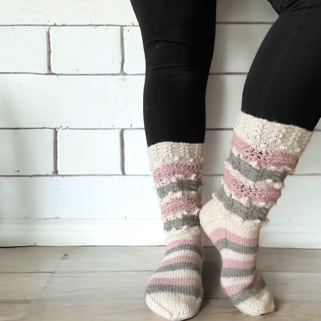 Varren pitsit, palmikot ja nyppylät tekevät sukista muhkeat ja lämpimät.
