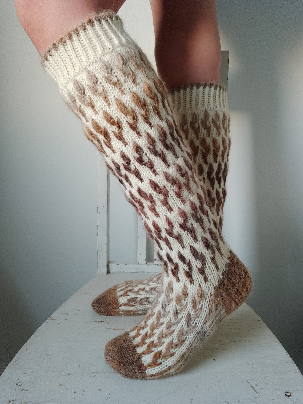 Pitkävartiset kirjoneulesukat