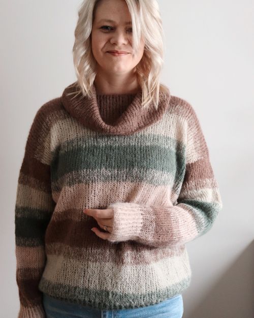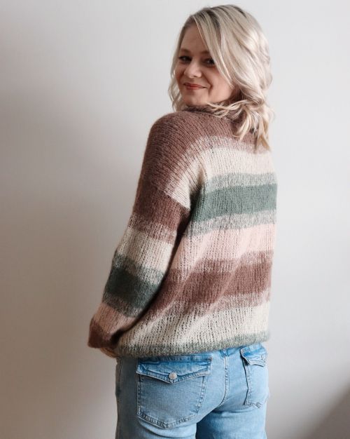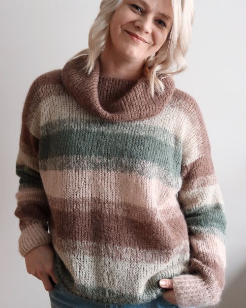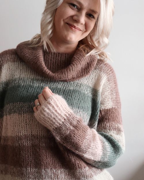 Mohairlangoilla leikkiminen on hauskaa! Käytä siis varastosi mohairit tai valitse itsellesi juuri oikeat värit! Lempi-villapaita neulotaan ylhäältä alas.