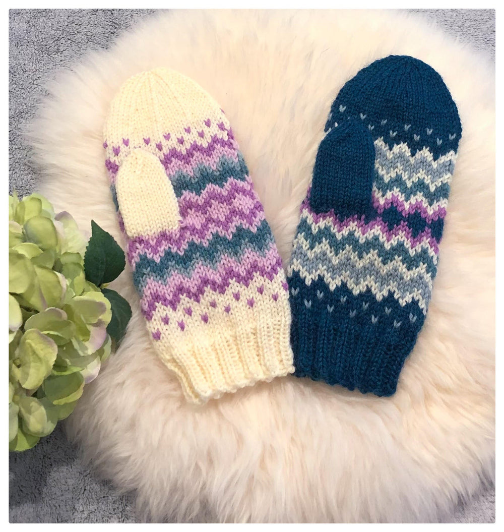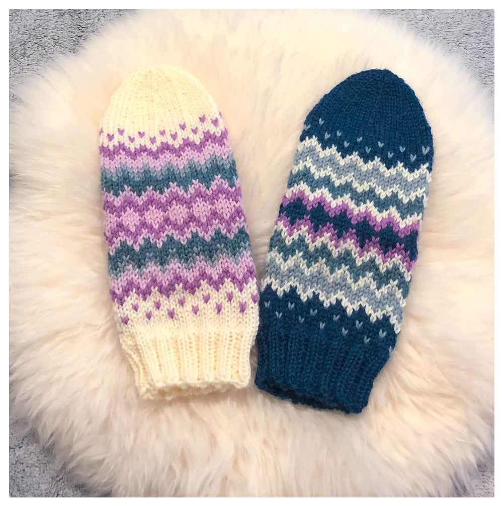 Lumen sulaessa-kirjoneulelapaset, neuleohje (kuvat Irene Pöytäsaari)