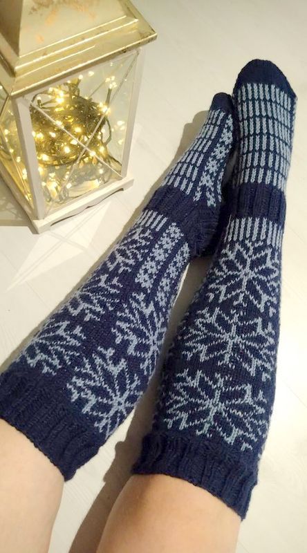 Lumihiutale-kirjoneulesukat, neuleohje (kuva Minna Romppainen)