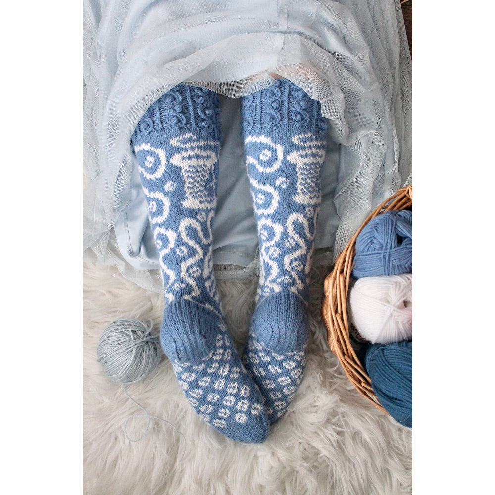 Lumoava lanka-kirjoneulesukat, neuleohje (kuvat Saara Viljanen)