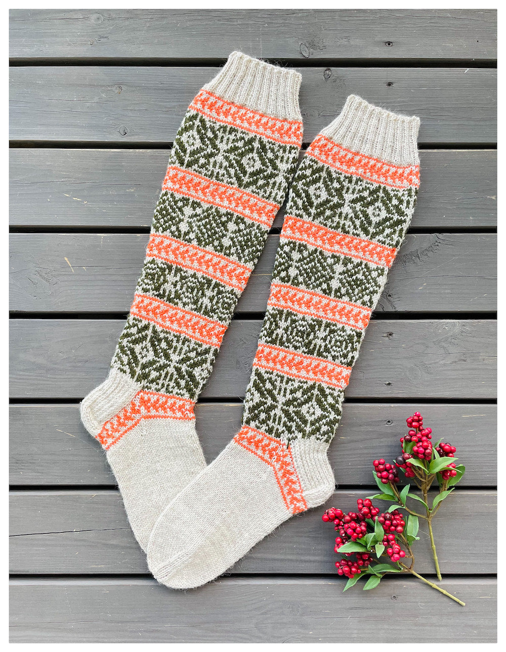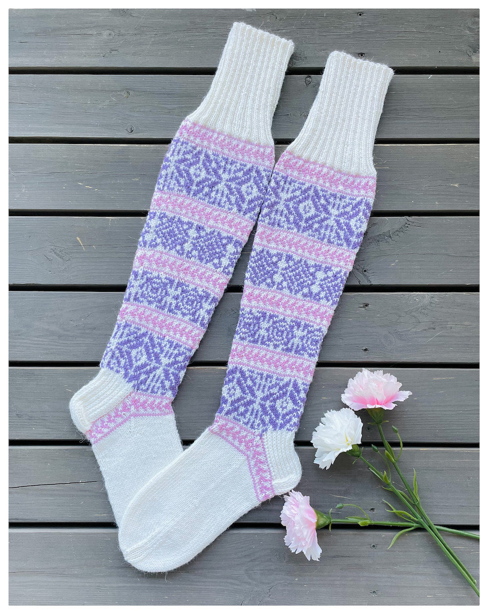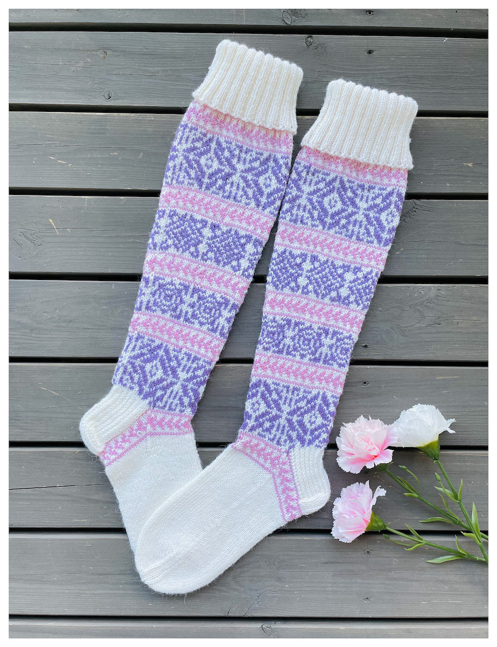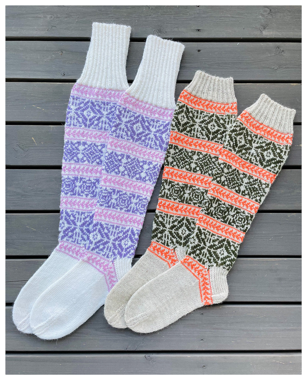 Lumotut-kirjoneulesukat, neuleohje (kuvat Irene Pöytäsaari)