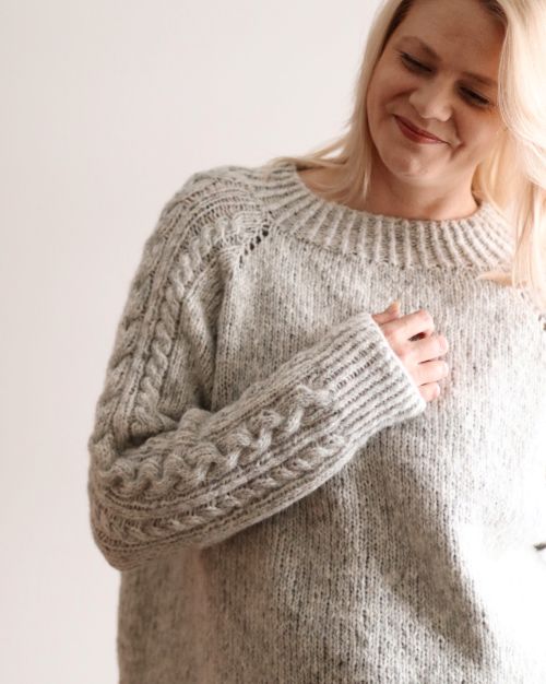 Lumous-villapaita neulotaan saumattomasti ylhäältä alas luoden hihoihin isot ja kauniit palmikkokuviot, jotka antavat pienen lumouksen ihanan pehmeälle ja