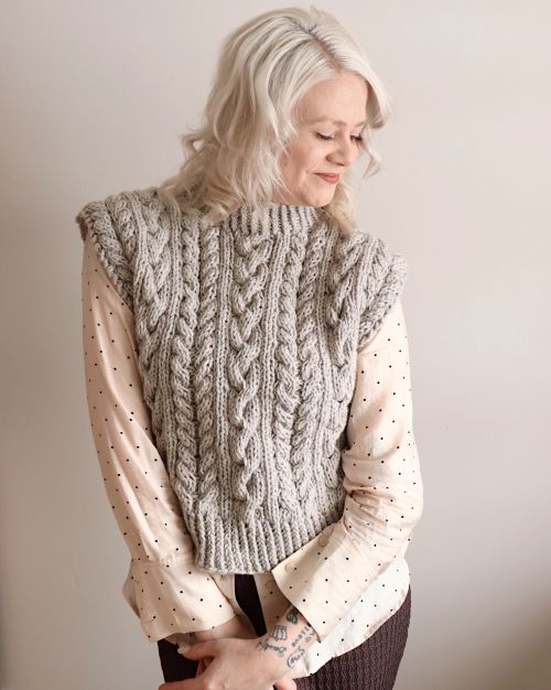 Luna-palmikkoliivi, neuleohje (kuva Hannemaridesign)