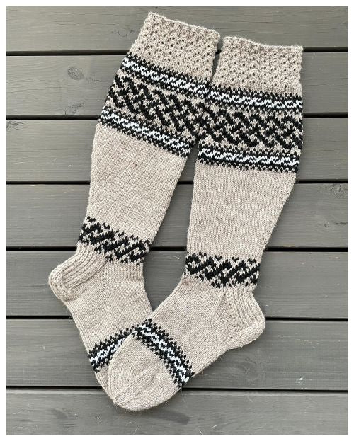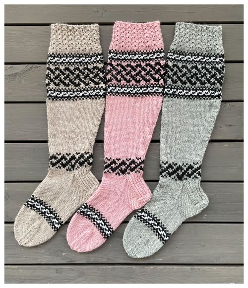 Tyylikkään yksinkertaiset perinnekuvioiset pitkät sukat! Ohjeessa silmukkamäärät sekä kapeampaan että leveämpään lestiin, joten ei muuta kuin neulomaan haluamallasi värillä.