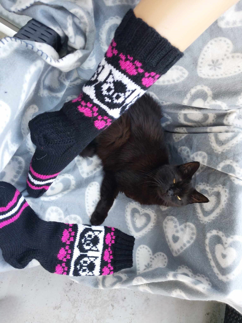 Kaikkihan tykkää sekä villasukista että kissoista. Näiden sukkien paras puoli on se, että asiat yhdistyvät mitä hauskimmalla tavalla. Sukkien mallina ja innoittajana toiminut Panakeiakin pääsi mukaan kuviin.