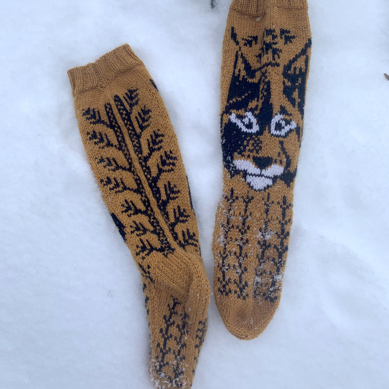 Metsän kissa-kirjoneulesukat, neuleohje (kuva Tanja Eriksson)