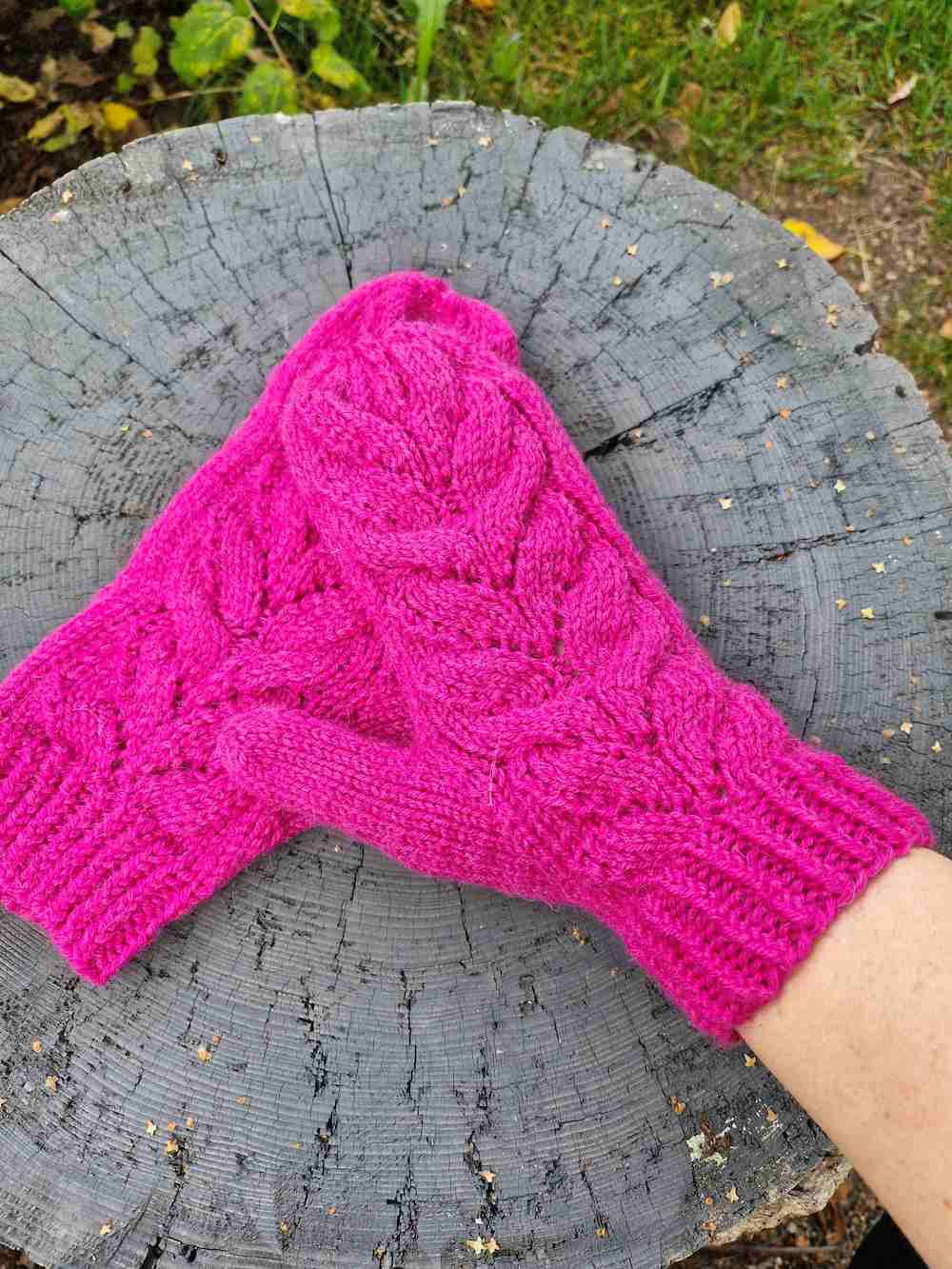Mimosa pitsipalmikkolapasissa on sekä pientä pitsiä että palmikkoa ja ne neulotaan varresta kärkeen. Nämä lapaset sopivat juuri alkusyksyyn! Lapasissa on pyöreä kärki ja kiilapeukalo.