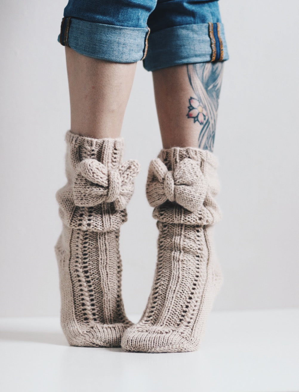 Söpöillään Nanneli-sukilla! Yhdellä ohjeella voit neuloa samistelu sukat vaikka koko perheen kaikille naisille. Pieni pitsiraita varresta varpaisiin on helppo muistaa ja iso rusetti sukan yläosassa on söpöintä ikinä. Anna rusetin näkyä ja neulo itsellesi Nannelit moneen eri väriin! Ohjeessa kuvalliset ohjeet rusettien tekoon.