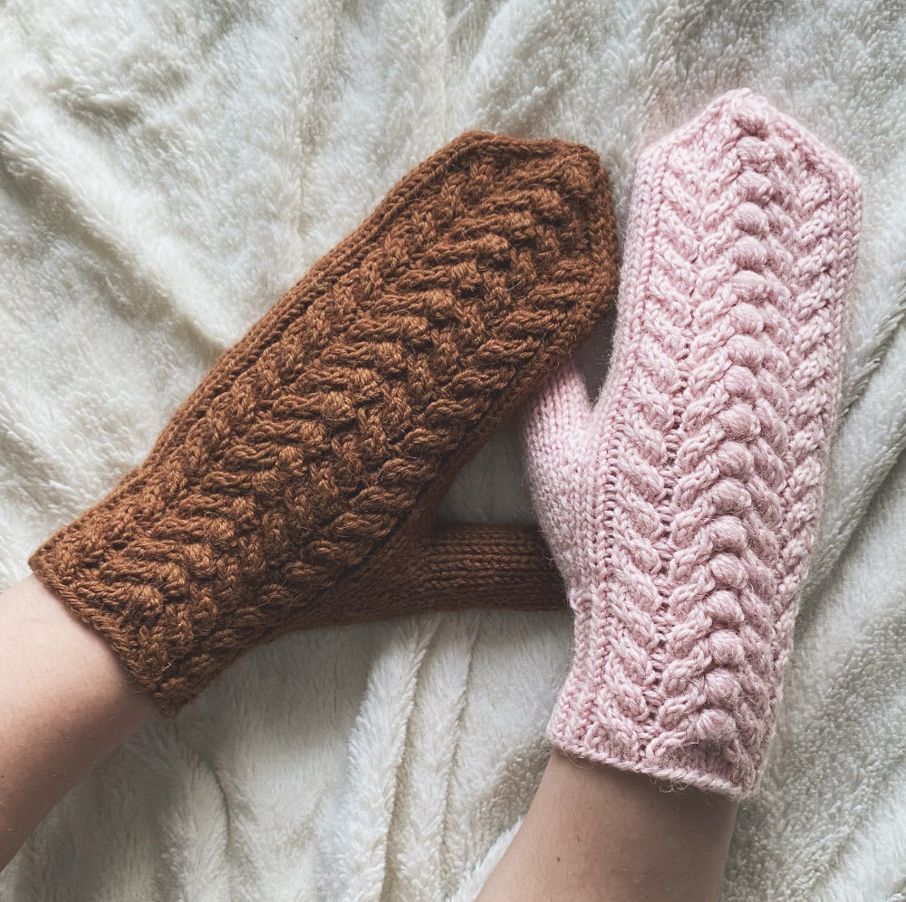 Neilikka-lapaset, neuleohje (kuva @neuleita)