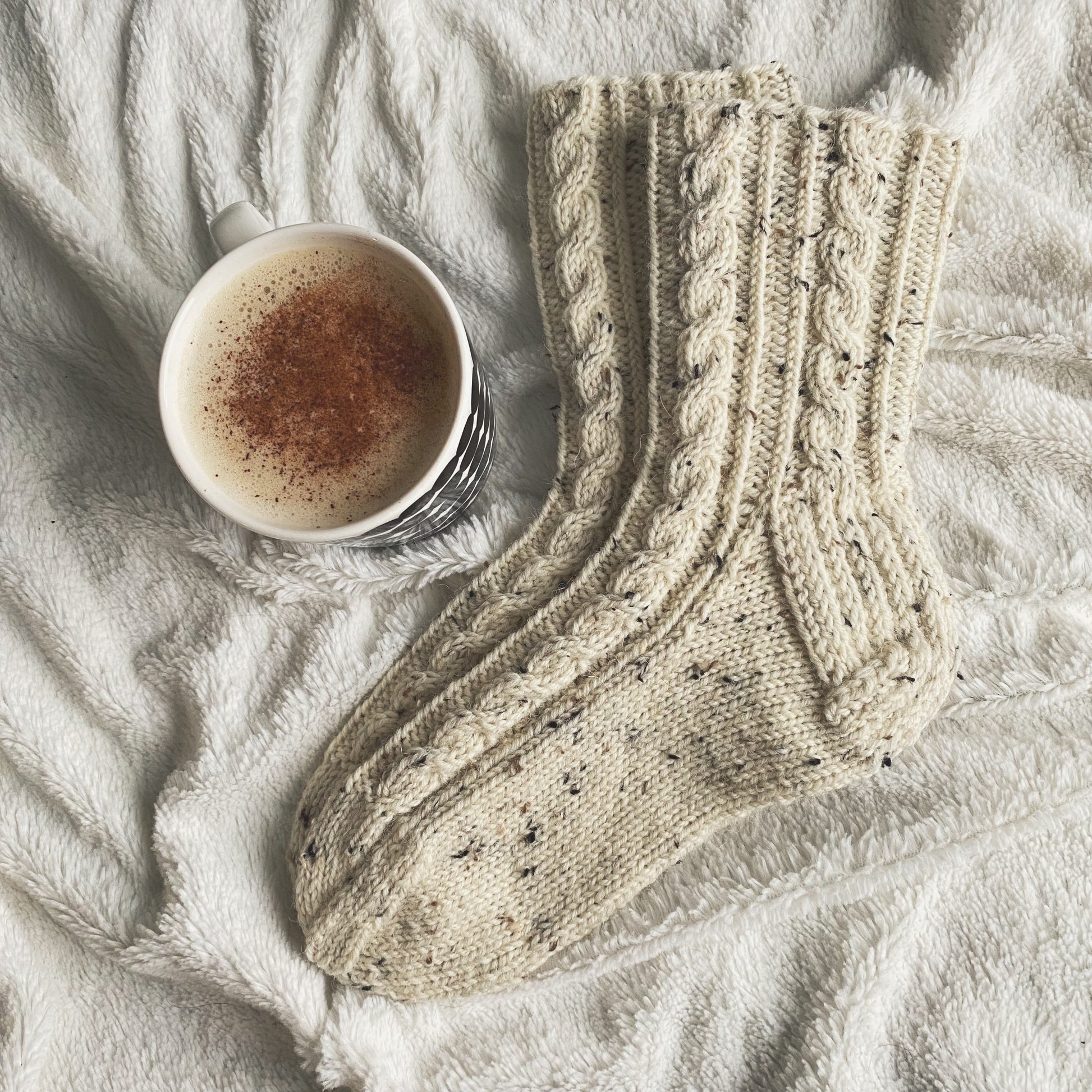 Kahvitauko sukat ovat helpot ja nopeat neuloa, ohjetta on kehuttu myös aloittelija-ystävälliseksi! Lankaa tähän sukkapariin kuluu noin yksi 100g kerä Novitan 7 veljestä lankaa.
