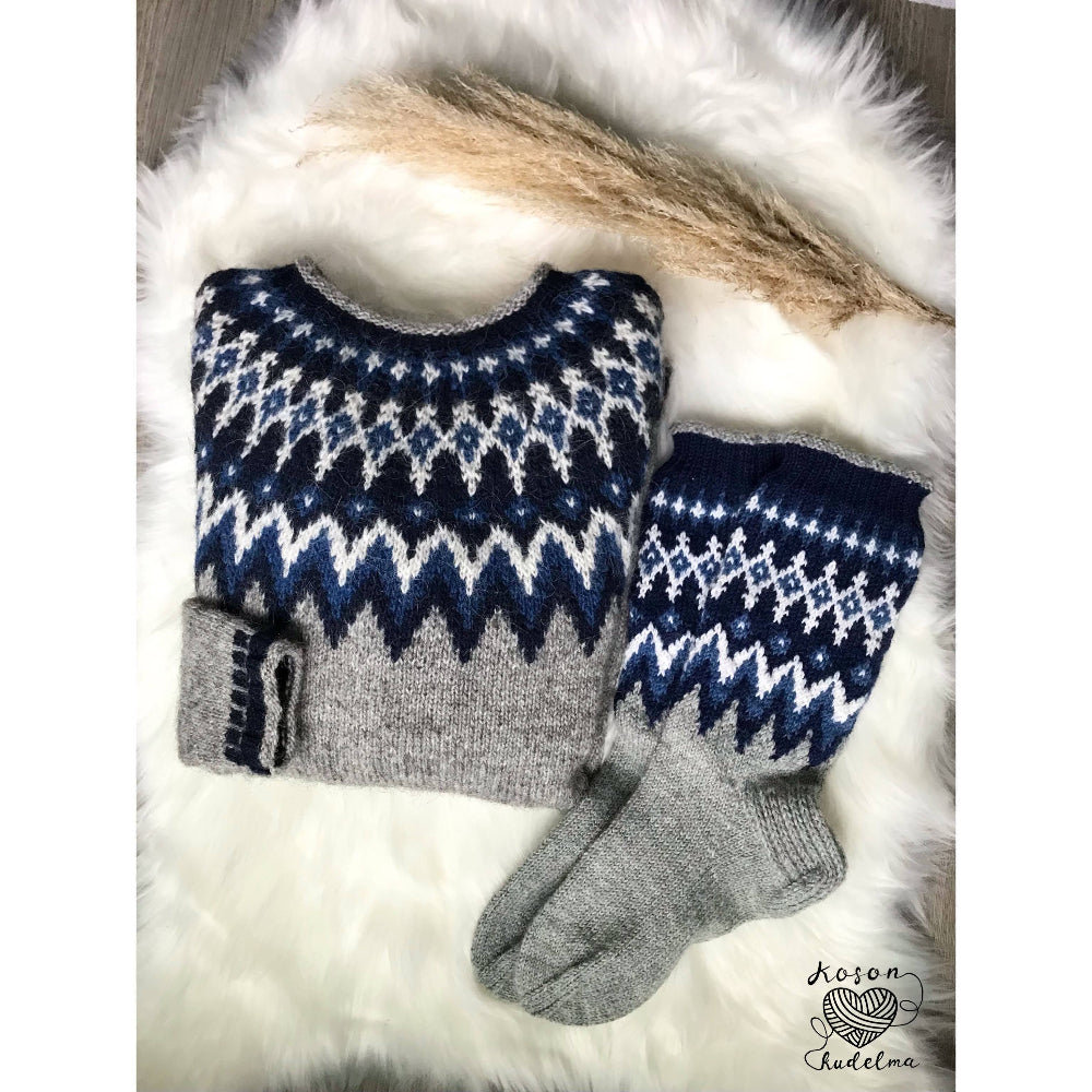 (kaikki työssä käytetyt langat ovat paksuudeltaan Istex Lettlopi vahvuisia)
