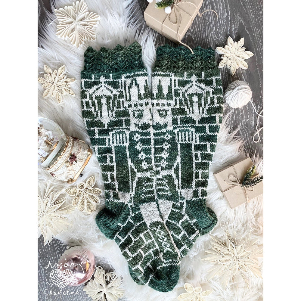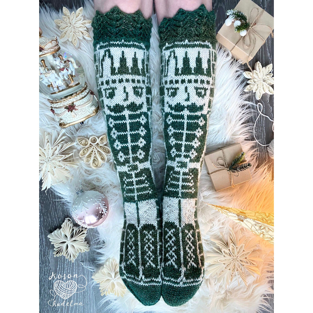 Pähkinänsärkijä-kirjoneulesukat, neuleohje