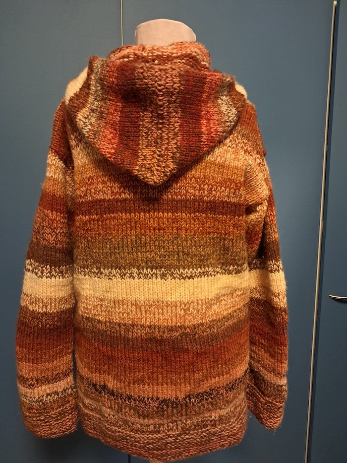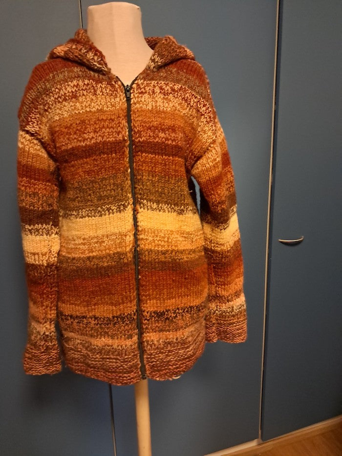 Paksu neuletakki vetoketjulla ja hupulla, neuleohje