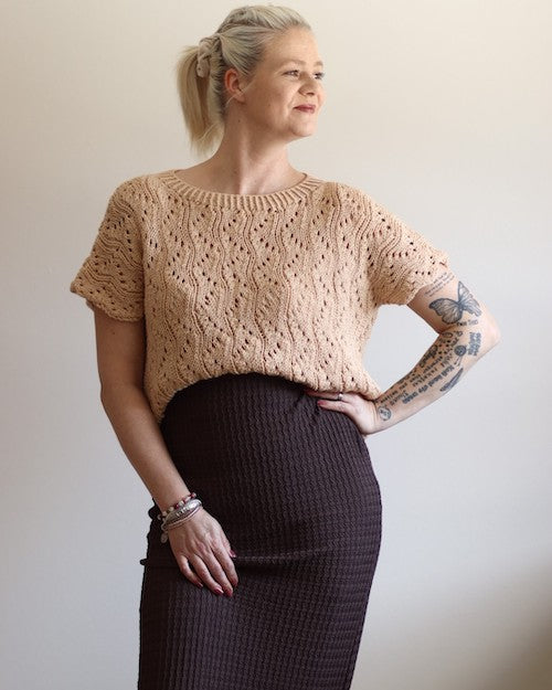 Saimi - kesän kaunein pitsineule! Teeppari neulotaan ylhäältä alas toistaen pitsikuviota helmaan asti.