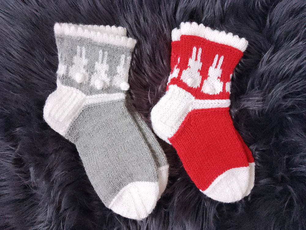 Pupuset-neuleohjesetti sisältää ohjeet sekä lasten, että aikuisten sukkiin!