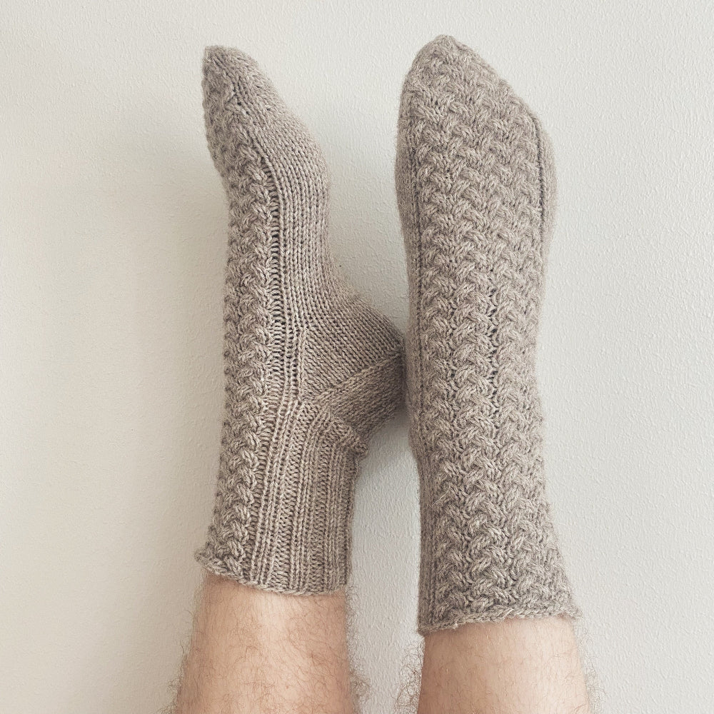 Rouhe-sukat, neuleohje (kuva @neuleita)