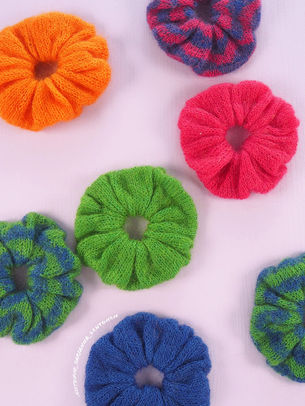 Mallidonitsit on neulottu langoilla Ito Sensai (60 % mohair, 40 % silkki, 240 m/ 20 g) ja Knitting for Olive Soft Silk Mohair (70 % mohair, 30 % silkki, 225 m/ 25 g).