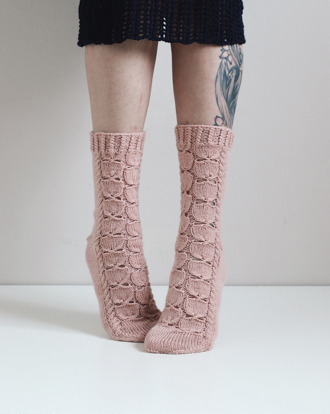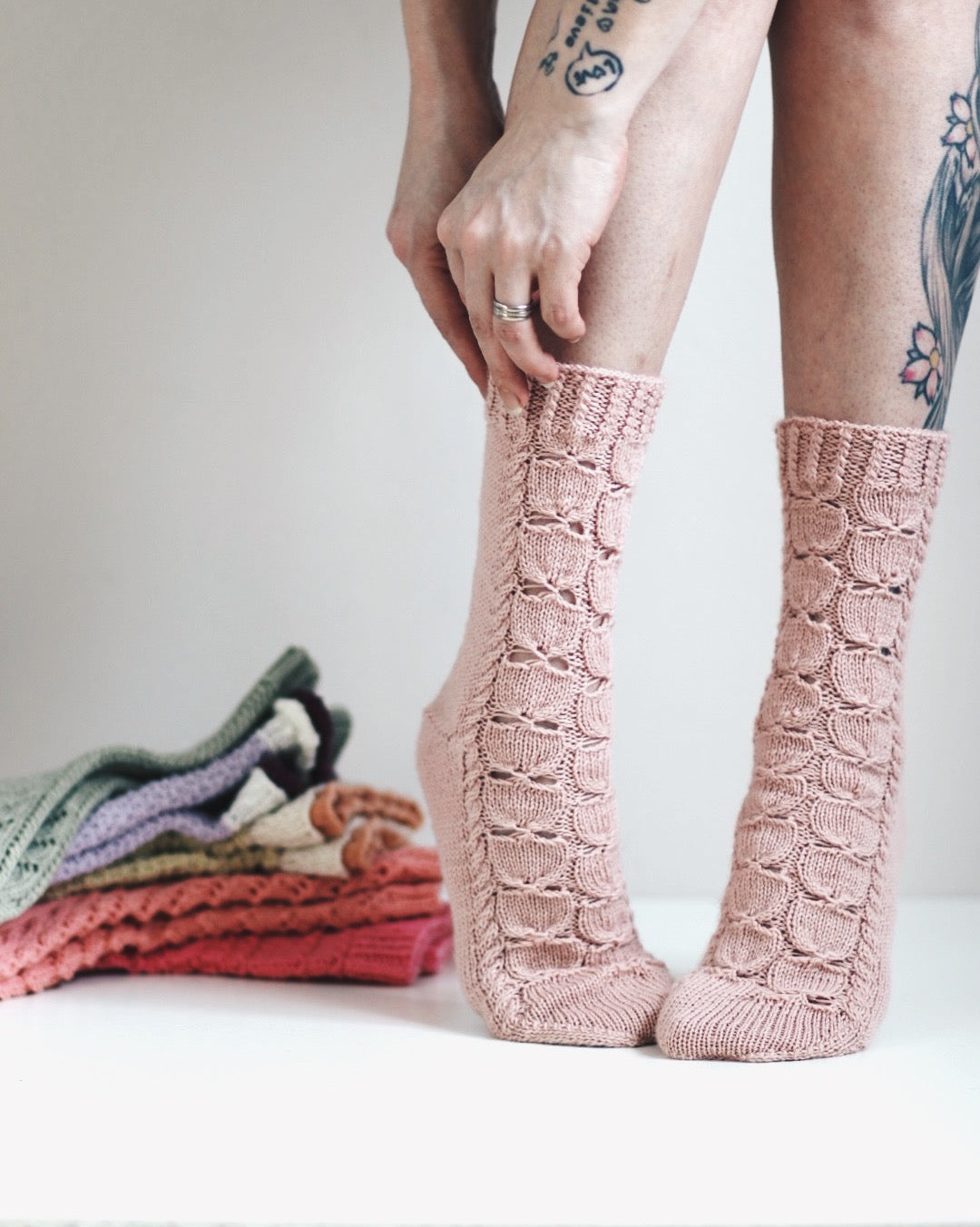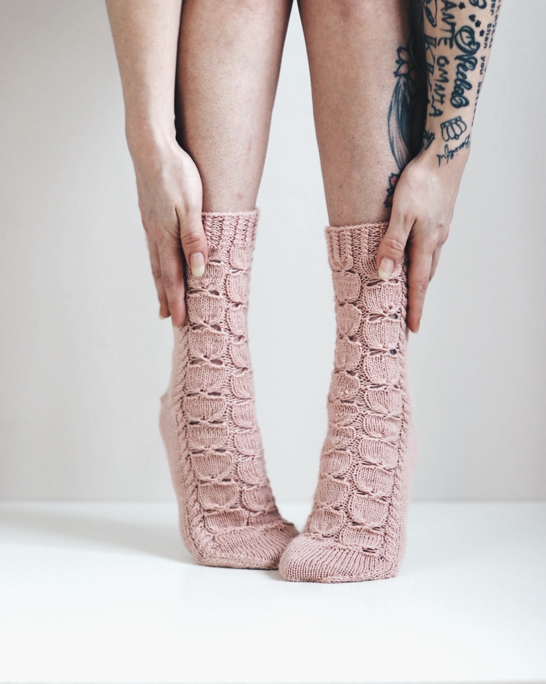 Ruusunen-sukat, neuleohje (kuva hnnmrdesign)