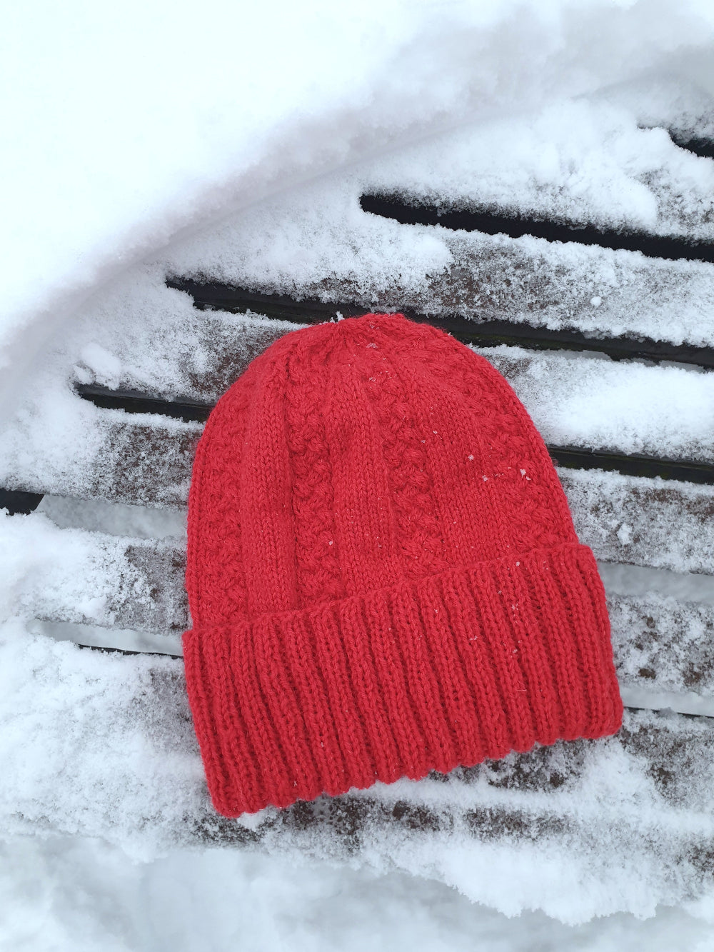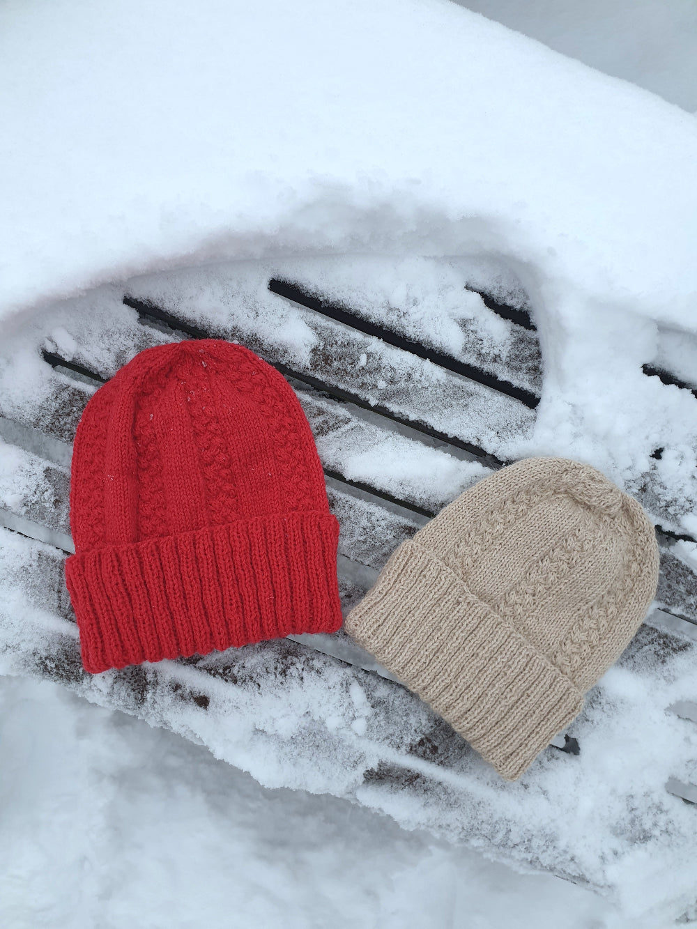 Ruusunnuppu-palmikkopipo, neuleohje (kuvat: Maarit O, @sweetsandsocks)
