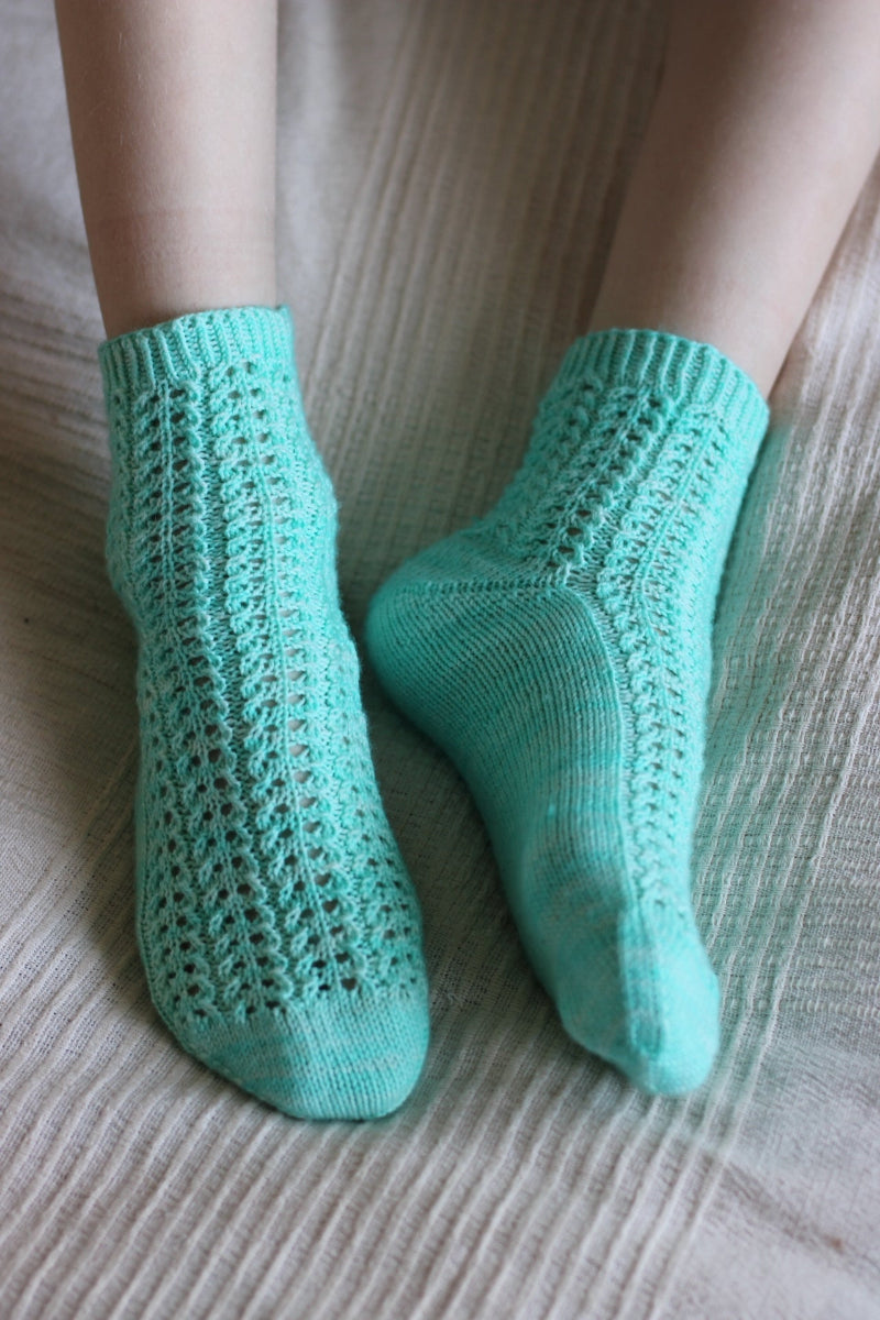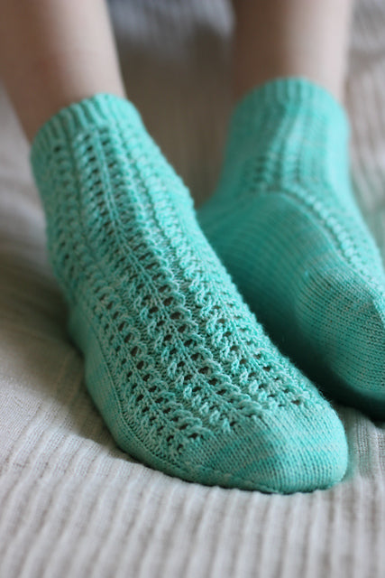 Seabreeze-sukat ovat ohuesta langasta neulottu herkkä pitsisukkamalli, joka tuo mieleen raikkaan merituulen. Ilmava pitsikuvio tekee sukista sekä elegantit että mukavat – täydelliset lämpimien säiden käyttöön. Ohjeessa on sekä kaavio että sanalliset ohjeet pitsille, kaksi eri kantapäävaihtoehtoa ja kaksi eri pituutta varrelle.
