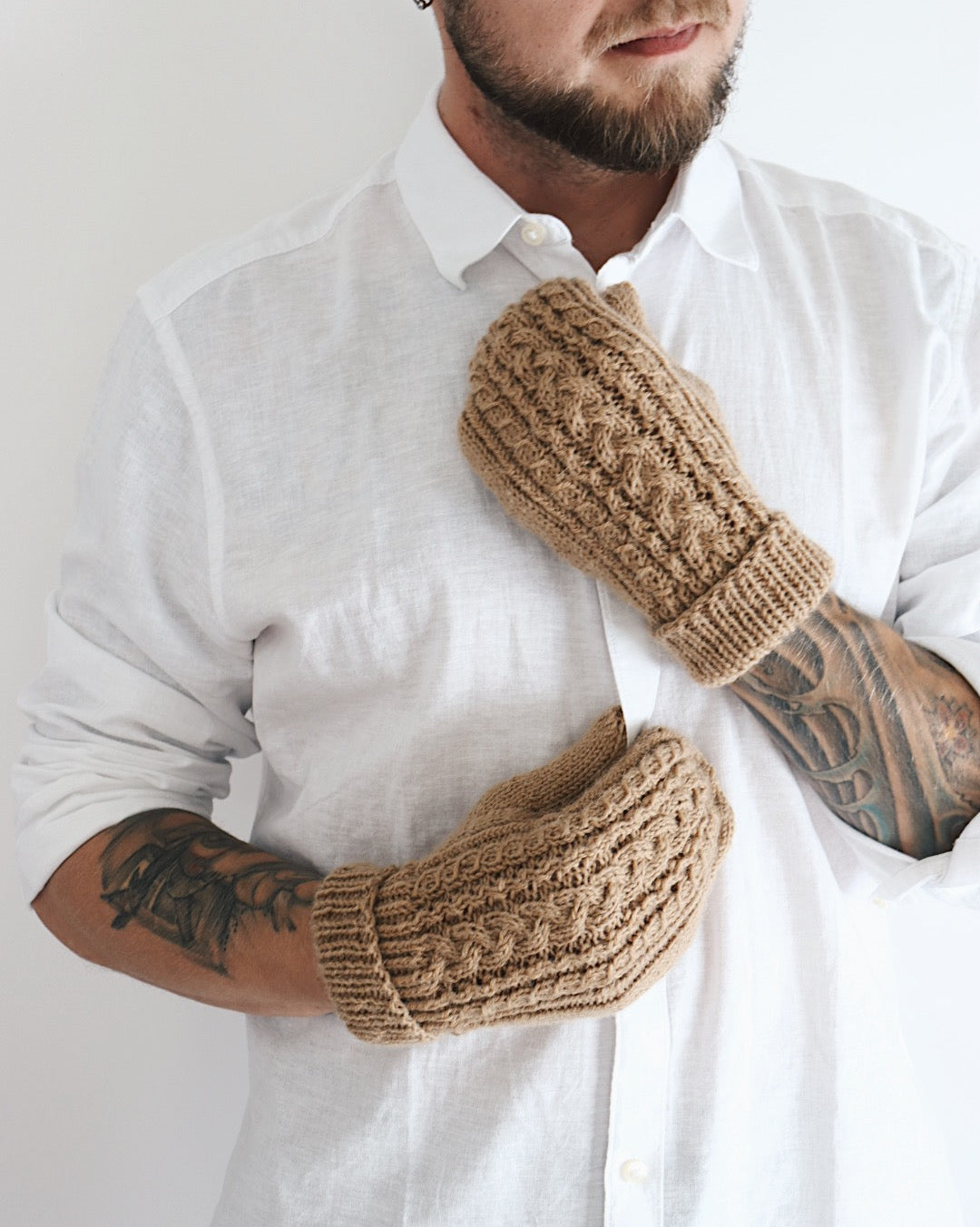 Voit joko taittaa varren tai lämmittää ranteita pitkällä joustinneuleella. Sinä & Minä-lapaset on unisex-malli.