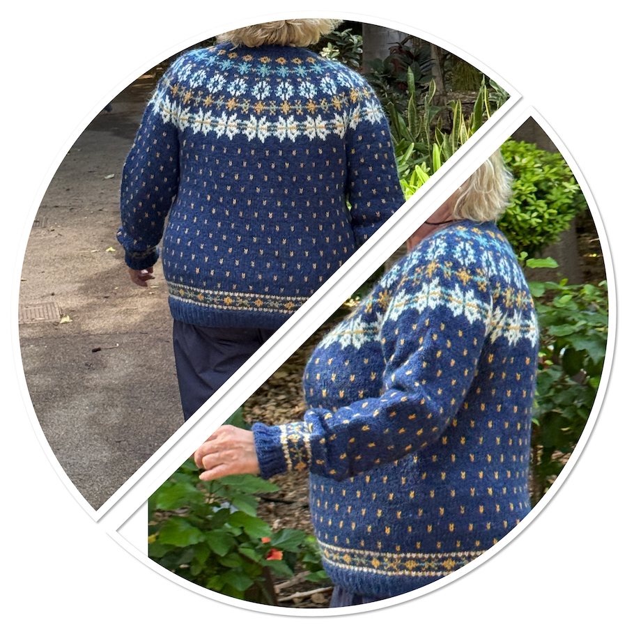 Neulotaan alhaalta ylös, vartalo ja hihat yhdistetään kaarrokevaiheessa.