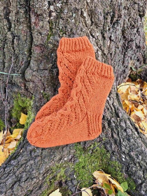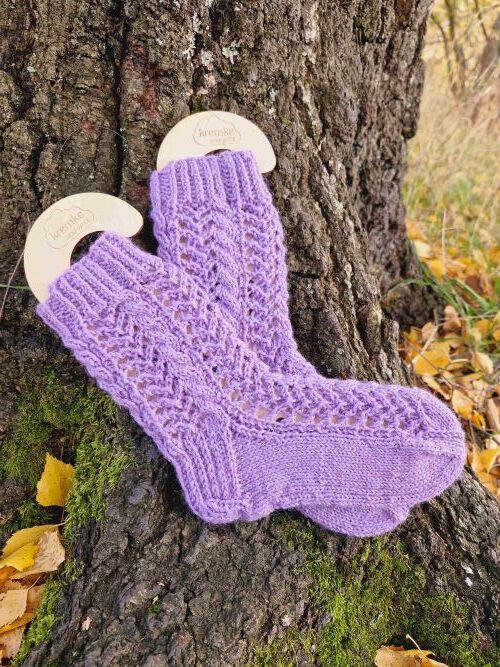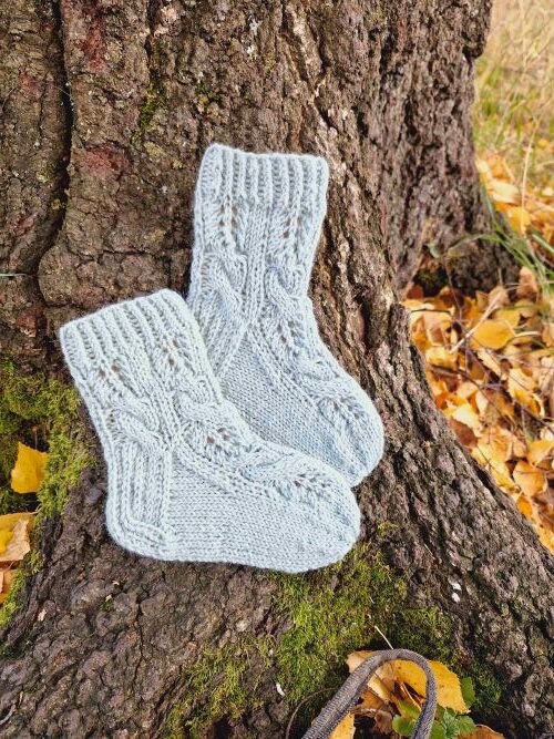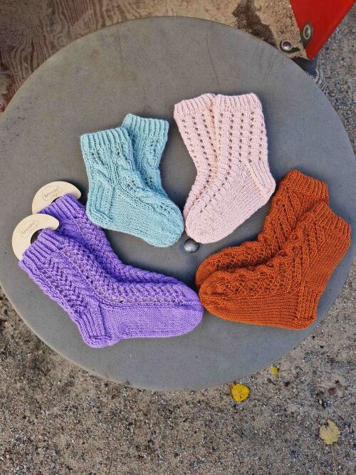 Tämä sukkaohjepaketti sisältää 4 uutta pitsi- tai palmikkokuvioista sukkaohjetta. Yhteensä julkaisussa on 8 eri kokoa, kussakin mallissa 1-3 eri kokoa. Kaikki mallit ovat pitsi- ja/tai palmikkoa ja/tai näiden yhdistelmiä. Ohjeet sopivat myös aloittelijalle, mutta osa ohjeista saattaa vaatia tarkkaa seuraamista.