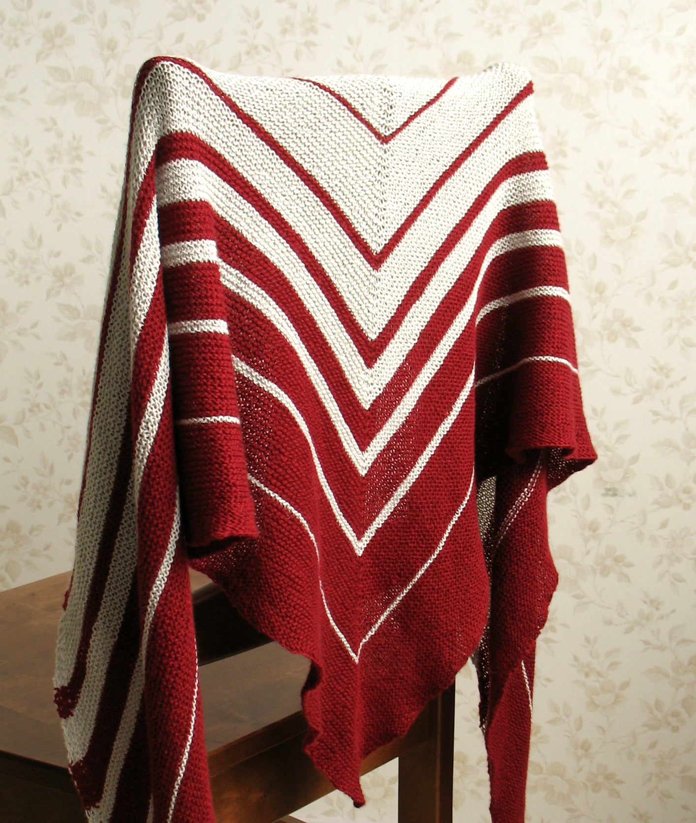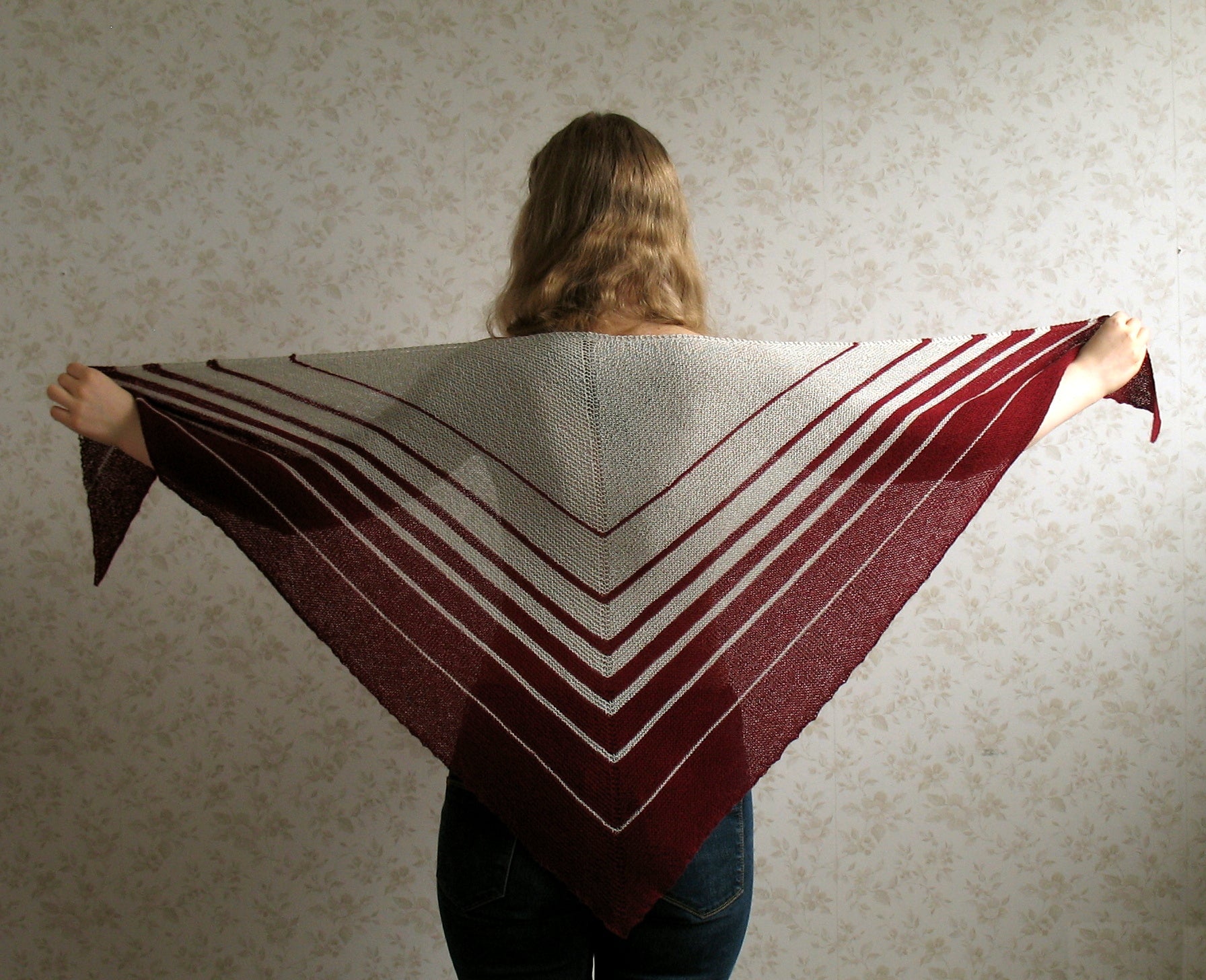 Ylhäältä alas neulottava kolmiohuivi, jossa on raitoja Fibonaccin jonoa mukaillen. Valmiin huivin koko pingottamatta: 153cm leveä, 70cm syvä, pingotettuna 174cm leveä ja 78cm syvä.