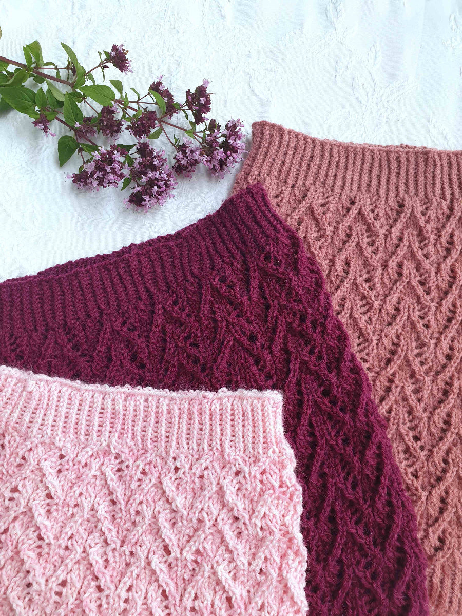 Suvituuli tuubihuivi on kaunis pitsihuivi, jossa on kolme eri kokoa ja voit neuloa sen dk -vahvuisilla langoilla. Ohje sopii myös aloittelijoille, mutta pitsikuvio saattaa vaatia tarkkuutta. Pitsikuvio on toistuva, mutta sitä kannattaa, ainakin aluksi, seurata tarkasti. Kuvan huivit ovat neulottu Drops Nord ja Skeinfinityn DK sukkanen (266 m = 100 g) langoilla. Novitan Nalle-lanka sopii myös ohjeeseen.