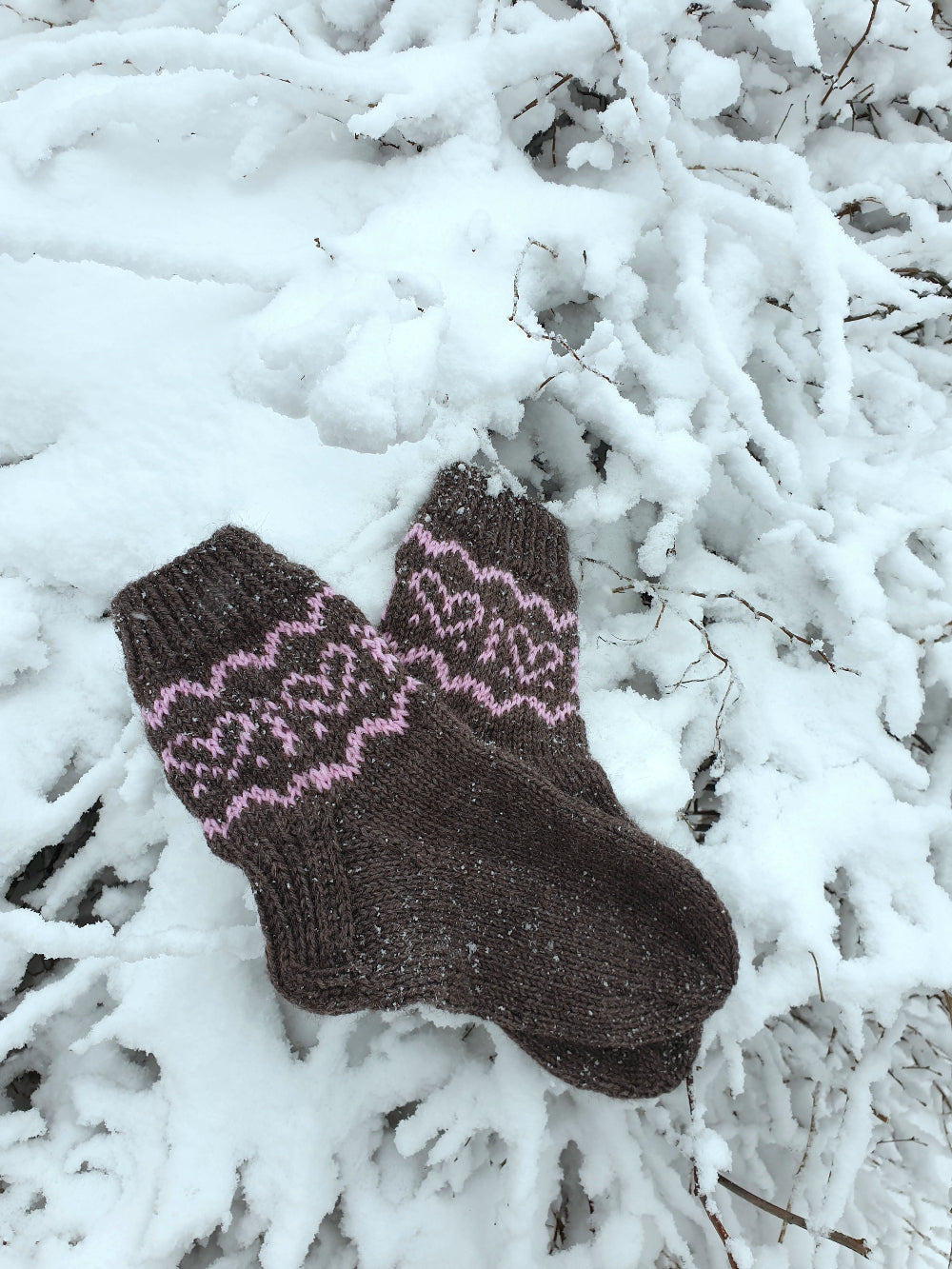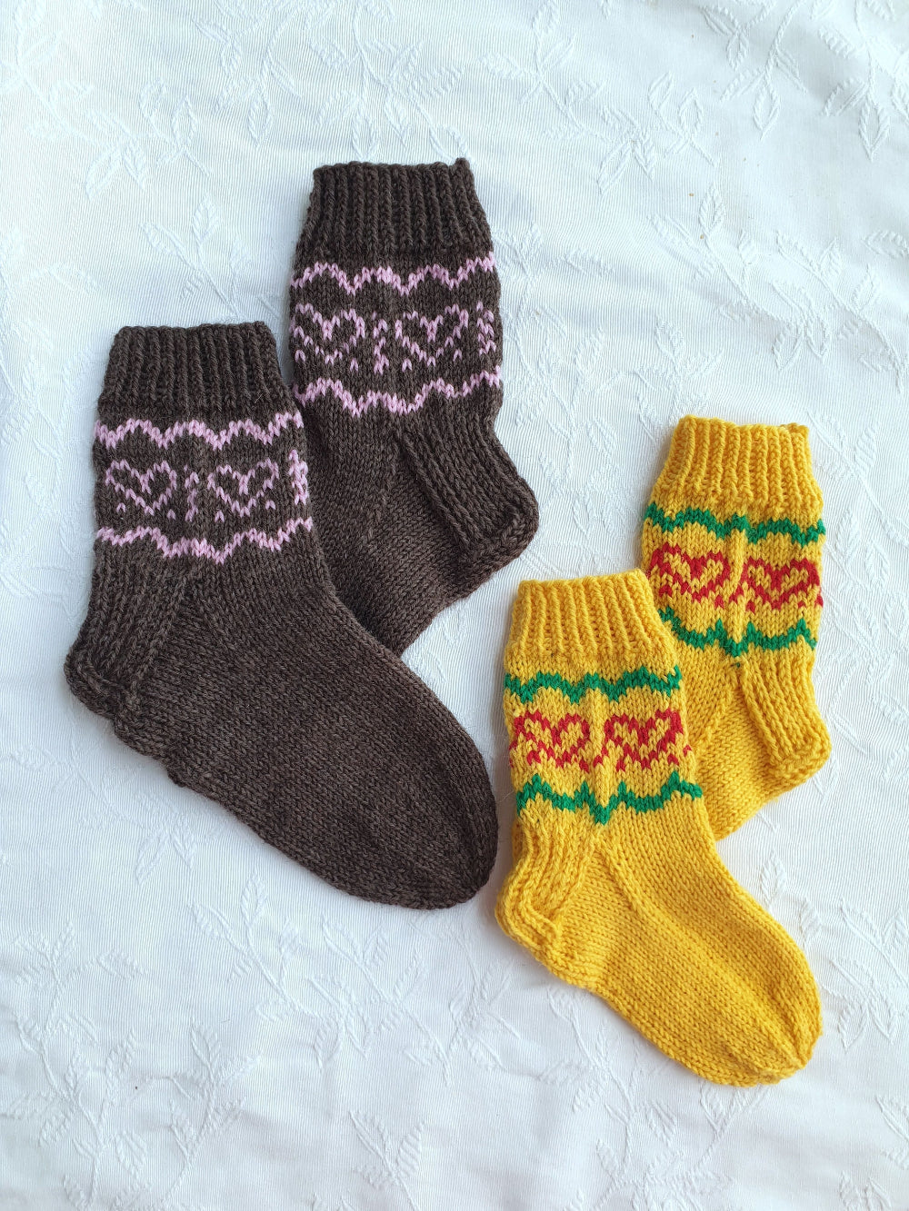 Sydämet-kirjoneulesukat, neuleohje (kuvat: Maarit O, @sweetsandsocks)