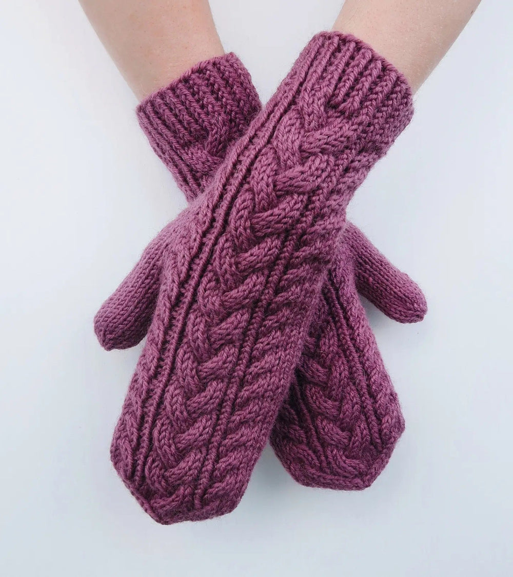 Lapasiin: noin 85 g Novita 7 Veljestä lankaa (100g=200m) tai vastaavaa lankaa sekä 3,5 mm puikot ja apupuikko palmikkoa varten