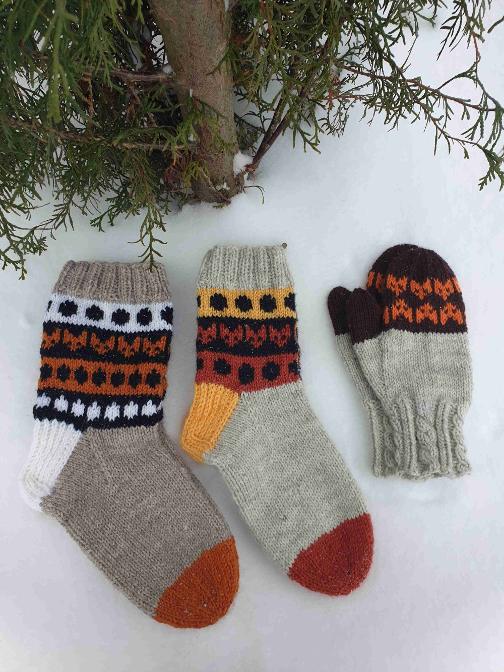 Koko: Ensimmäisissä villasukissa on kaksi kokoa, lapsi ja aikuinen, noin 30/31 ja 37/38 (kapeahko varsi) ja toisissa villasukissa on yksi koko noin 39/40 (leveämpi varsi). Leveämmän varren kettusukat saat neulottua vaikkapa myös miesten kokoon. Kettulapasissa on yksi koko, noin S-koko, lapsi (koululainen)/pieni aikuisen koko.