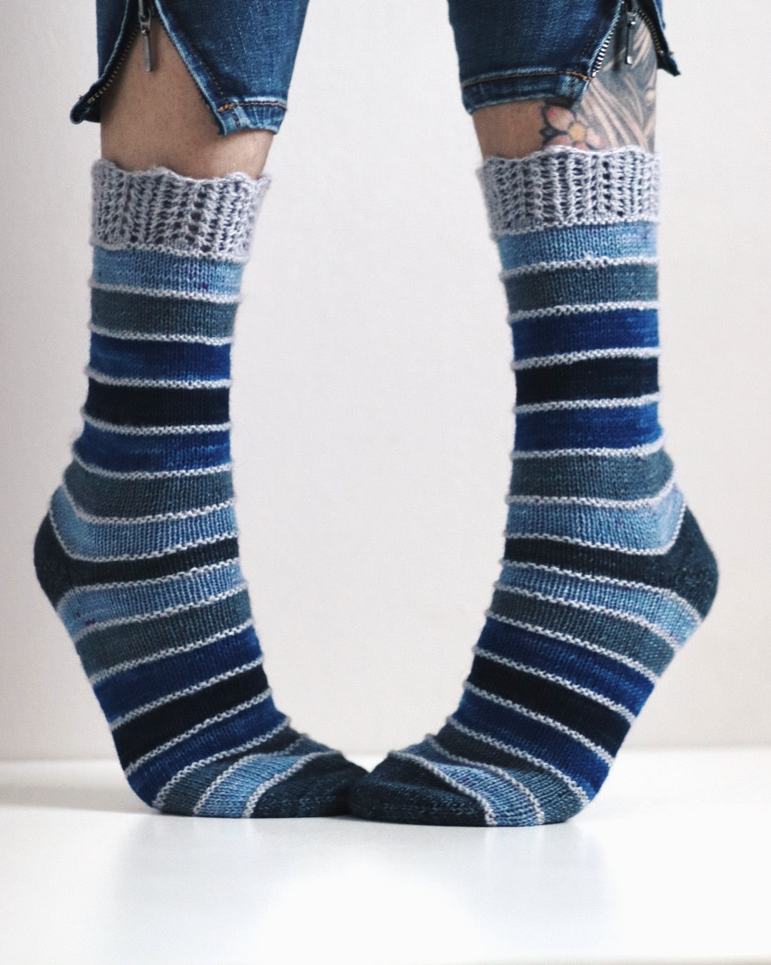 Koko: Naisten koko 36–42, sukan kokoa on helppo muuttaa vain neulomalla jalka osaa pidemmäksi tai lyhyemmäksi.