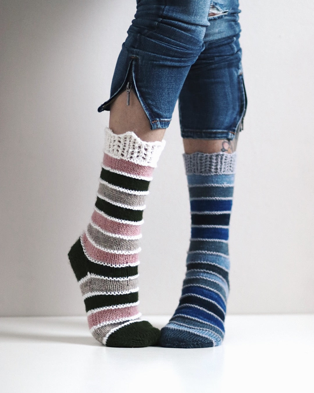 Tarinoita-sukat on jämälankojen tuhoamista varten! Ohjeessa voit käyttää niin aran, kuin fingerin-vahvuista lankaa. Tuhoa siis varastoja ja tee söpöily sukat!