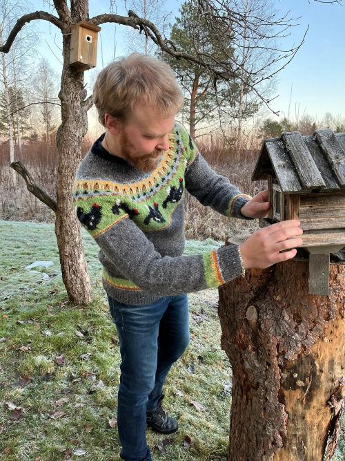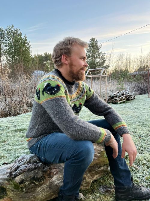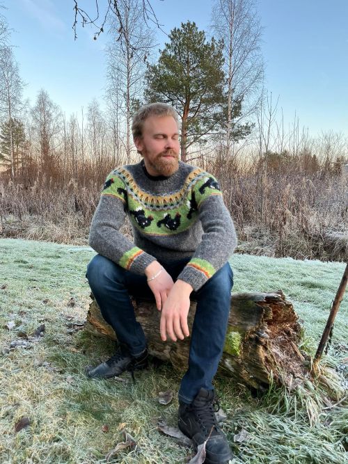 Vaikeusaste: Haastava (Useita pitkiä langanjuoksuja, osassa kuvioita max. 4 väriä samalla kierroksella, hieman silmukointia).
