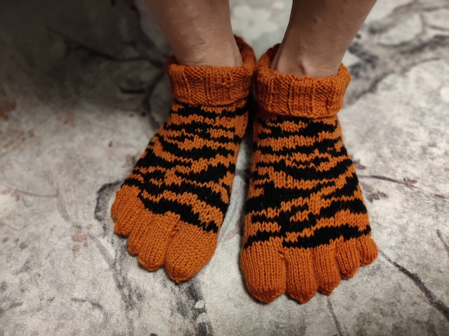 Tiikerin tassut-varvassukat, neuleohje (Kuvat: Katja Makkonen)