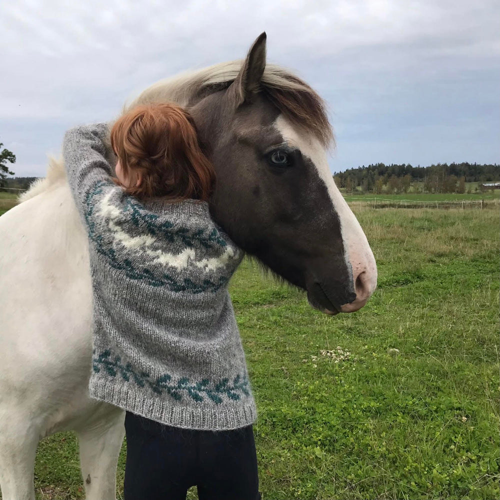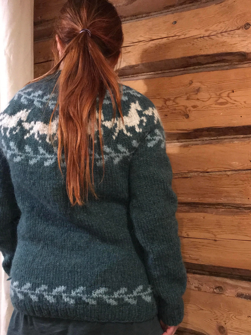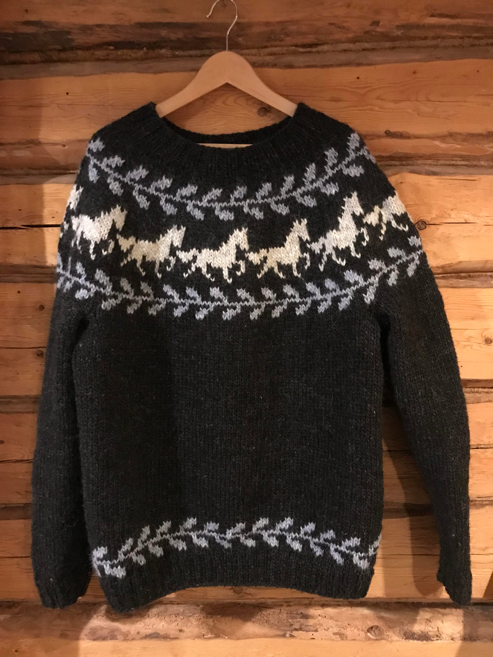 Islanninhevoskuvioinen villapaita, joka neulotaan saumattomasti alhaalta ylöspäin.