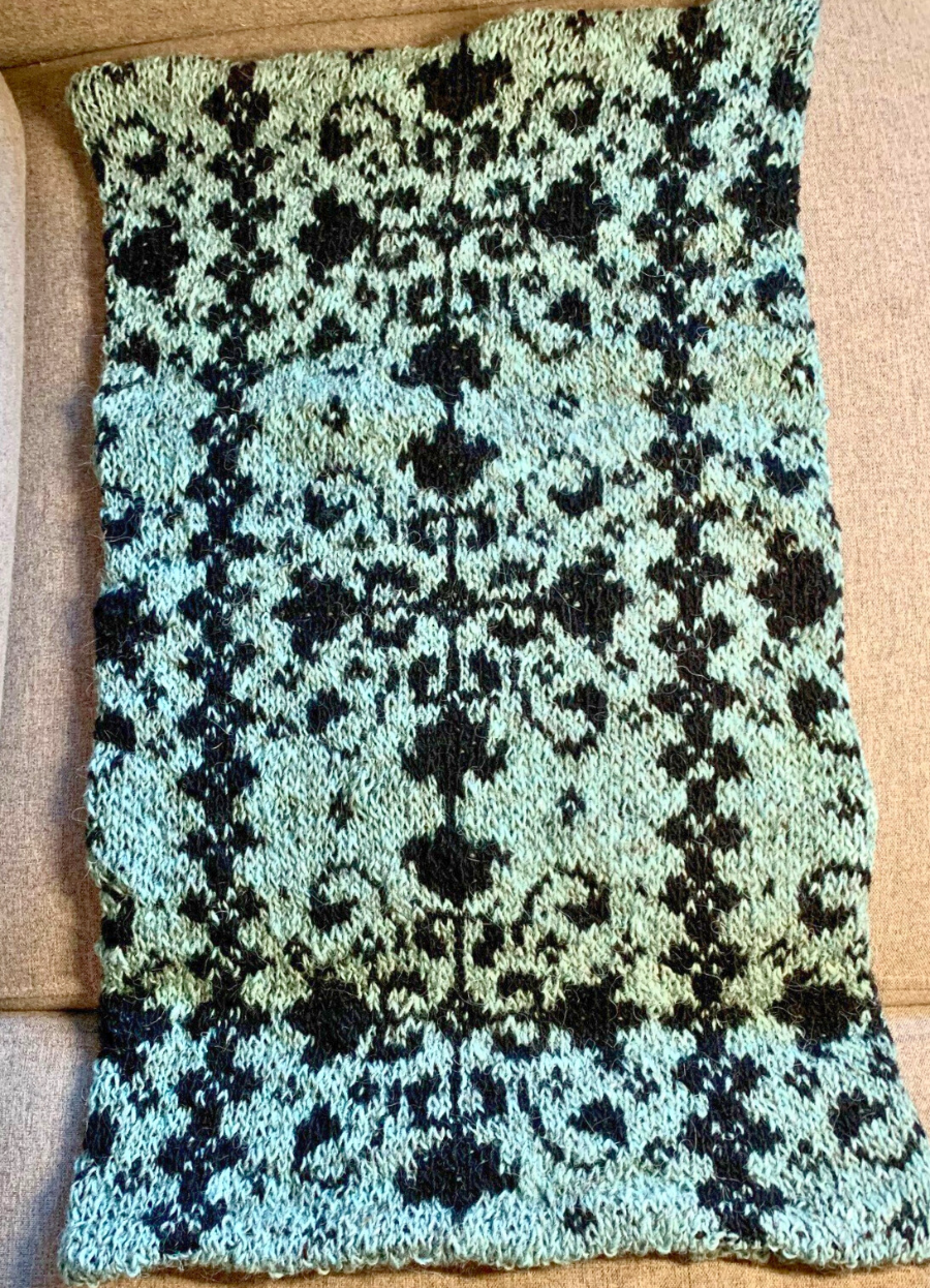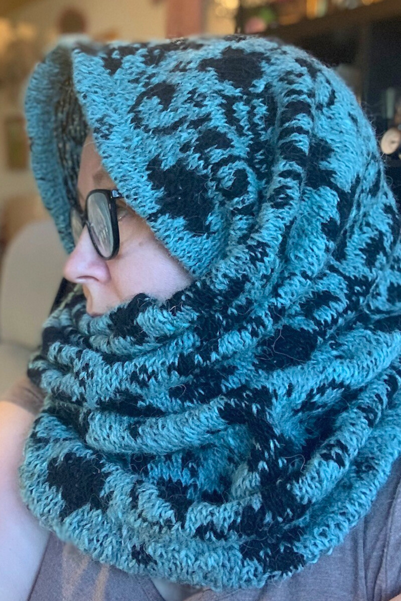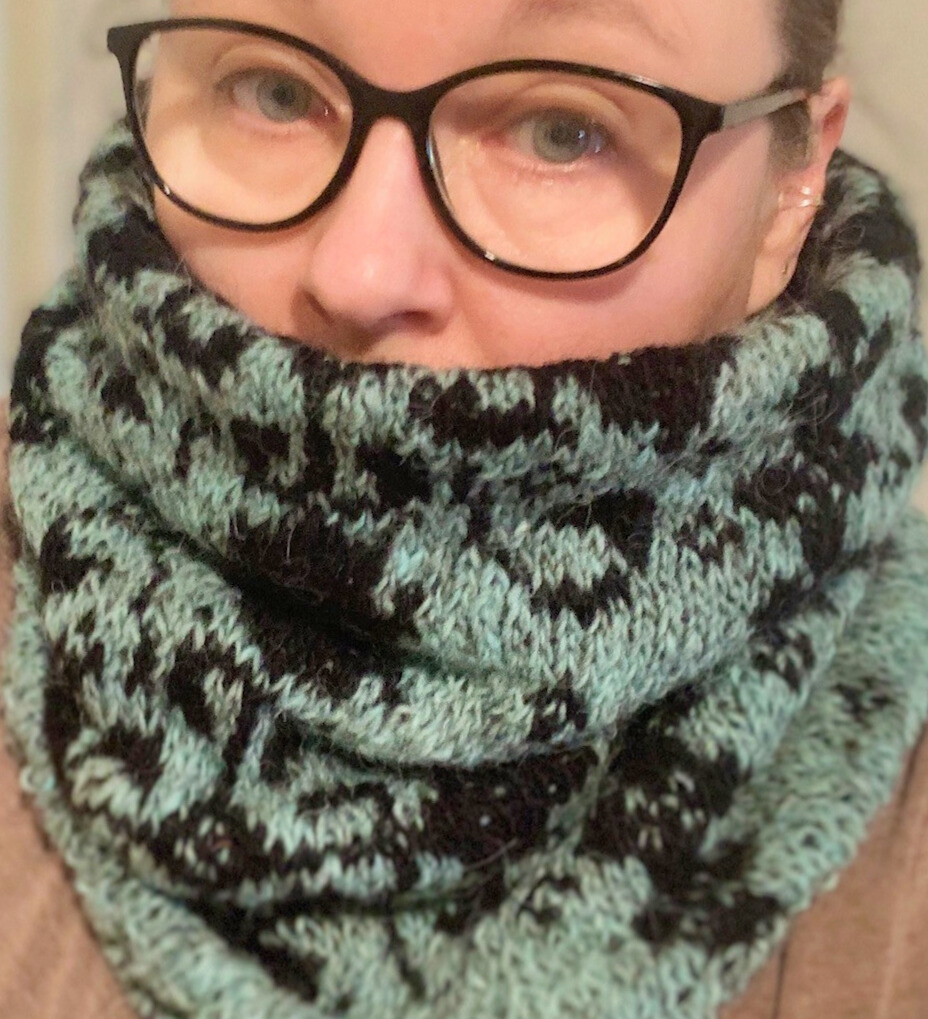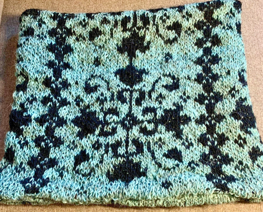 Lanka: Istex Fjallalopi lanka, vaalea turkoosi ja musta tai joku muu vastaava 50 g 150 m vahvuinen lanka.
