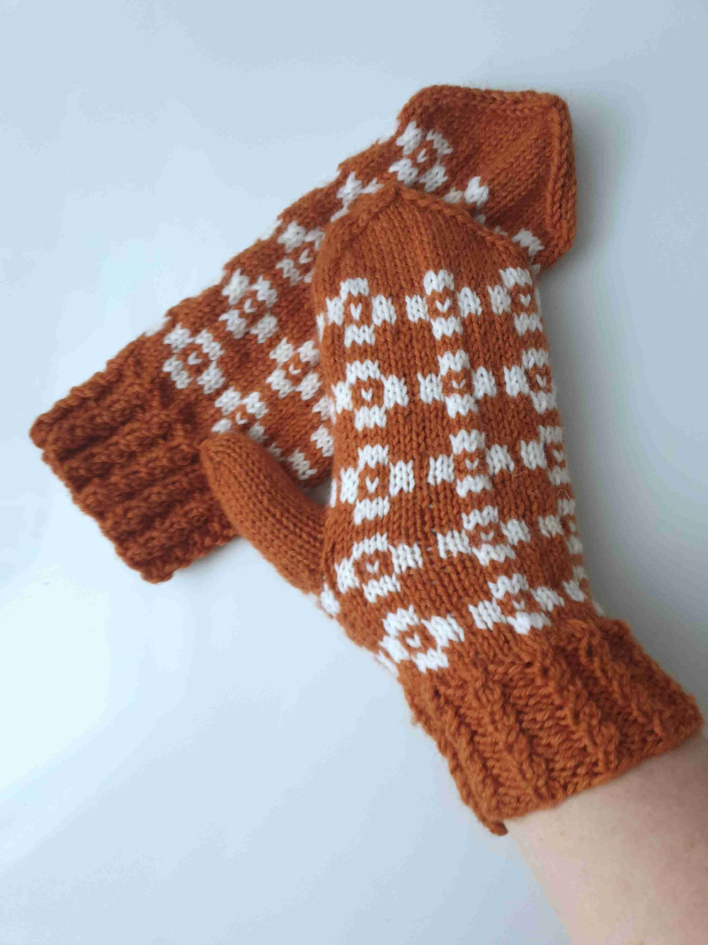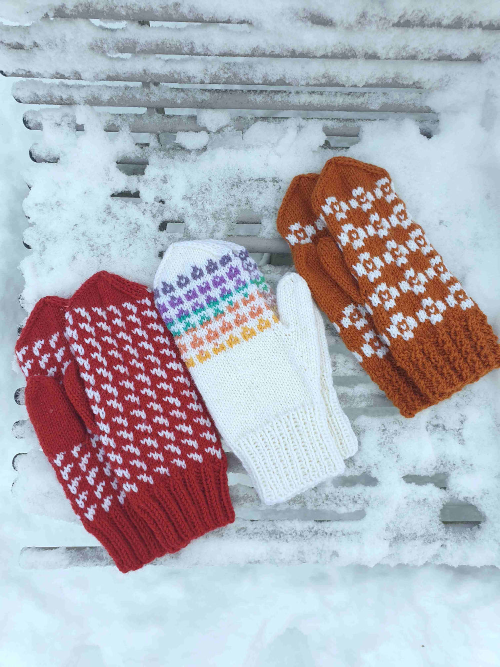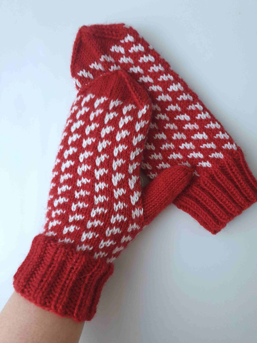 Kinuski lapaset: Pohjaväri: 50-60 g, Kuvioväri: noin 20-30 g