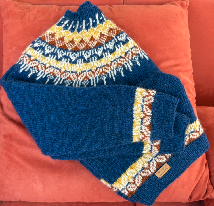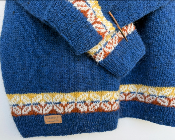Tarvikkeet: Vartalo-osaan pyöröpuikot 3,5 mm resoriin ja 4 mm / 80 cm ( isommissa koissa 100 cm) sileään ja kirjoneuleeseen. Hihoihin 3,5 mm sukkapuikot resoreihin ja 4 mm sukkapuikot tai lyhyet pyöröpuikot sileään ja kirjoneuleeseen.