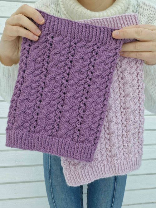Twisted tuubihuivi on palmikkoinen Aran-vahvuisesta (100 g=200 m) langasta neulottu tuubihuivi, jossa on sekä palmikkoa että pitsiä. Palmikot ja pitsi tekevät tuubihuivista muhkean ja sopii hyvin talvipakkasille takin alle tai päälle lämmittämään kaulaa. Ohjeessa on kaksi kokoa, josta pienempi sopii esimerkiksi lapselle