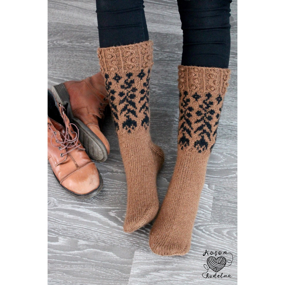 Ulpukka-kirjoneulesukat, neuleohje (kuvat Saara Viljanen)