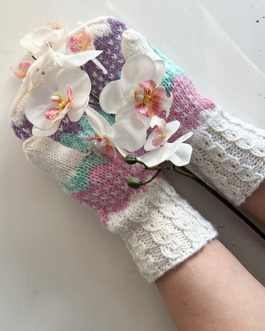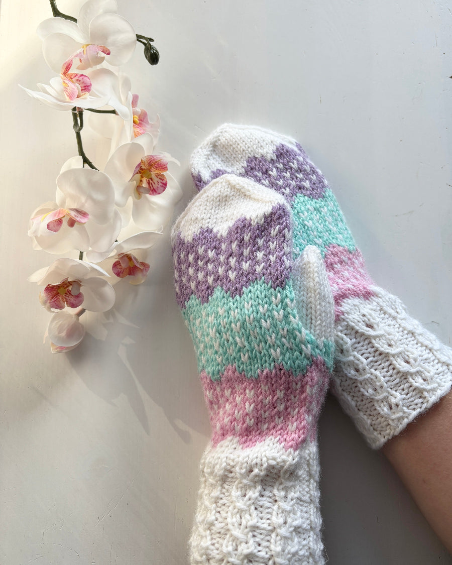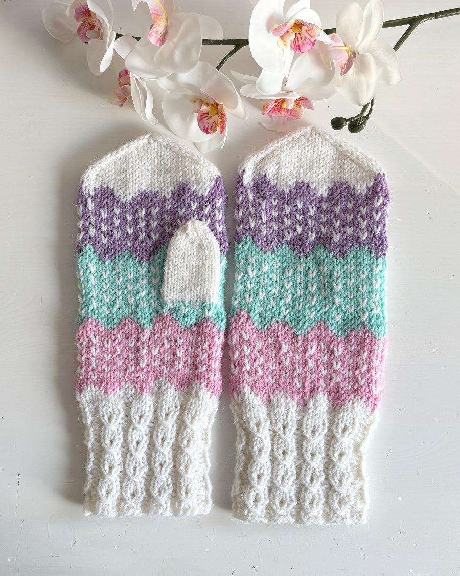 Valohippuja-kirjoneulelapaset, neuleohje (kuvat: Heidi Jokinen)