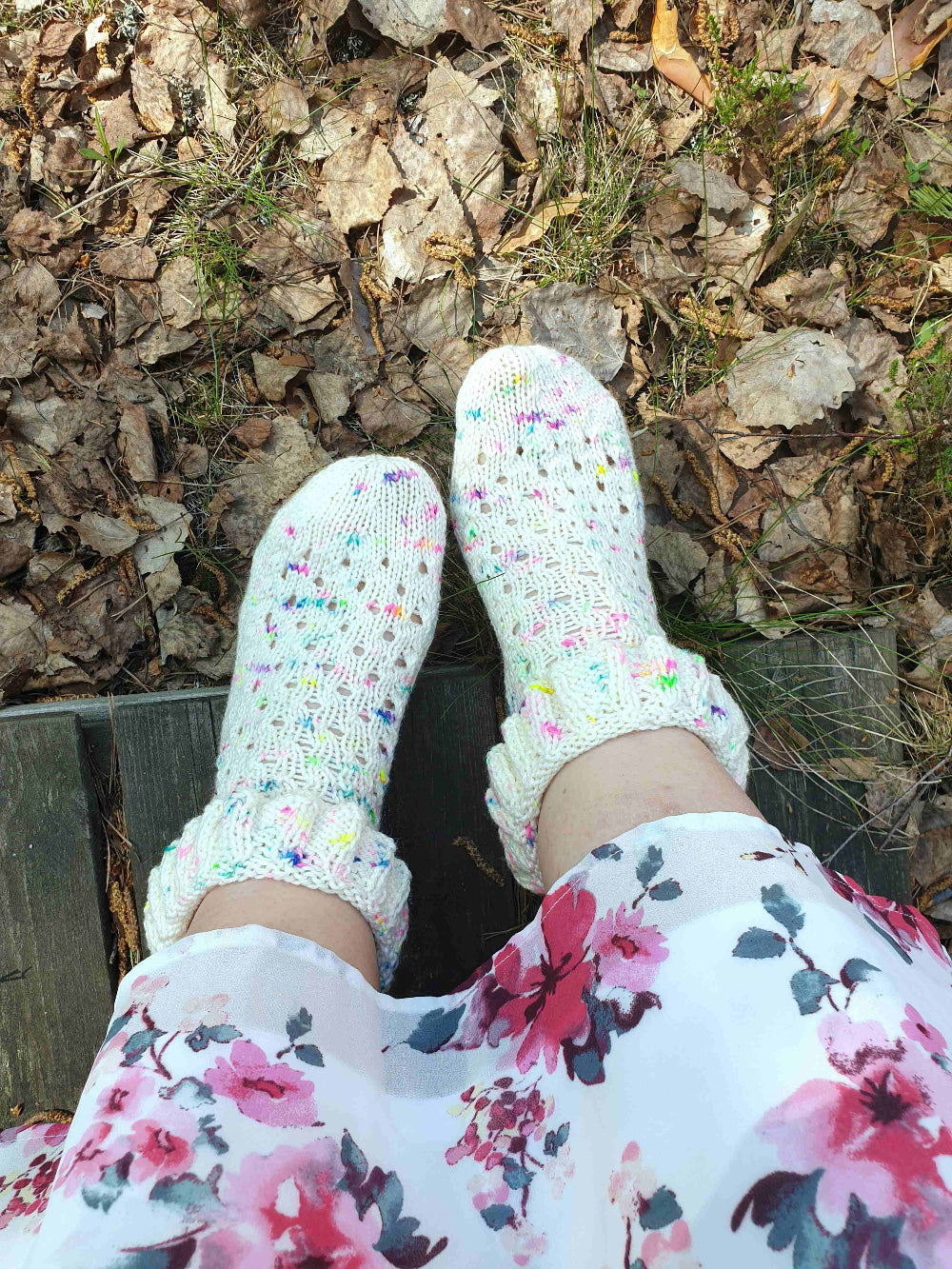 Väripilkut-sukat, neuleohje (kuvat: Maarit O, @sweetsandsocks)