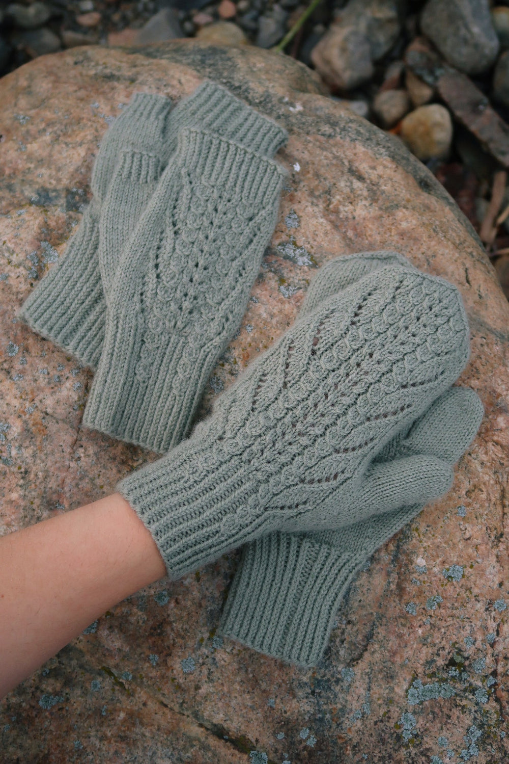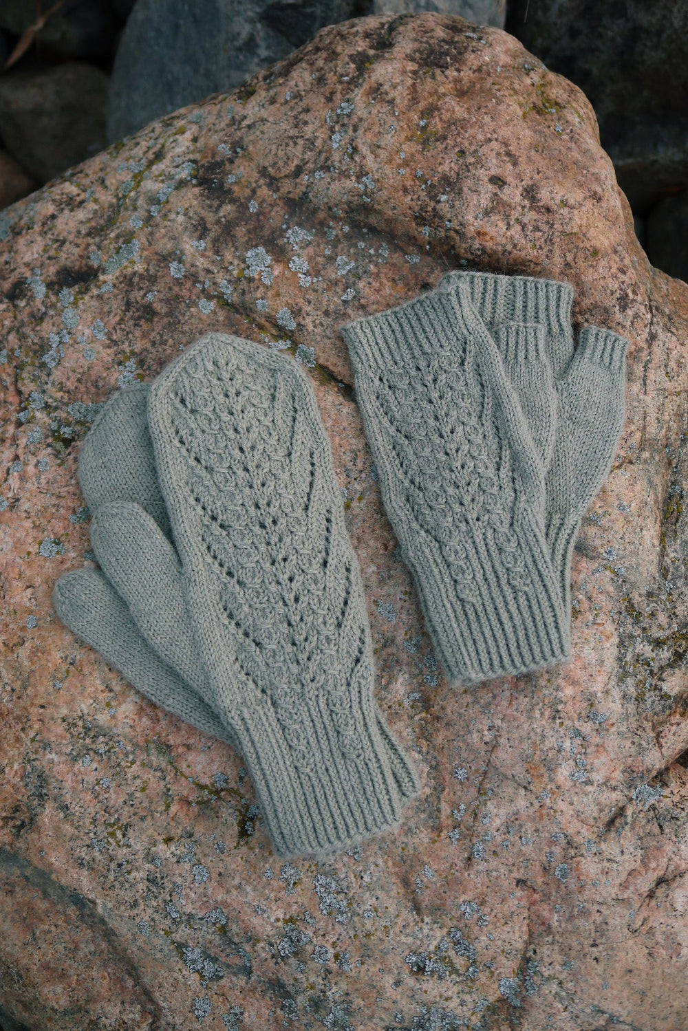 Tämän ohjeen avulla voit neuloa lapaset tai kämmekkäät – tai vaikka molemmat! Tämä pitsikuvio on herkkä ja kaunis. Lyhyen mallikerran ansiosta käsineet on helppo ja mukava neuloa. Mallikerran oppii myös nopeasti muistamaan ulkoa.