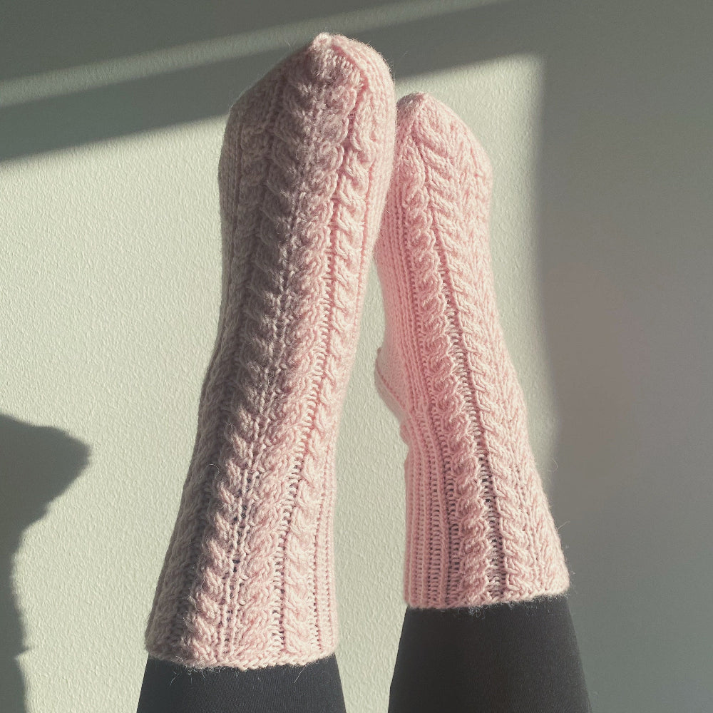 Viineri-sukat ovat helpot ja nopeat palmikkosukat ja ne on suunniteltu setiksi Viineri-lapasien kanssa. Ohjeessa naisten koot 36-38 sekä 39-41