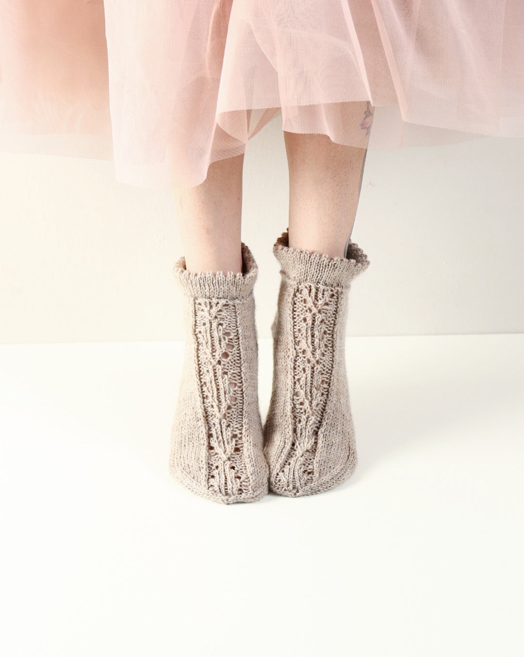 Ihanan ohuet Vilja-sukat neulot nopeasti fingering vahvuisesta langasta. Joustinneuleen tilalle on suloinen ja erilainen aloitus. Ohjeesta löydät kuvalliset neuvot varren tekemiseen.