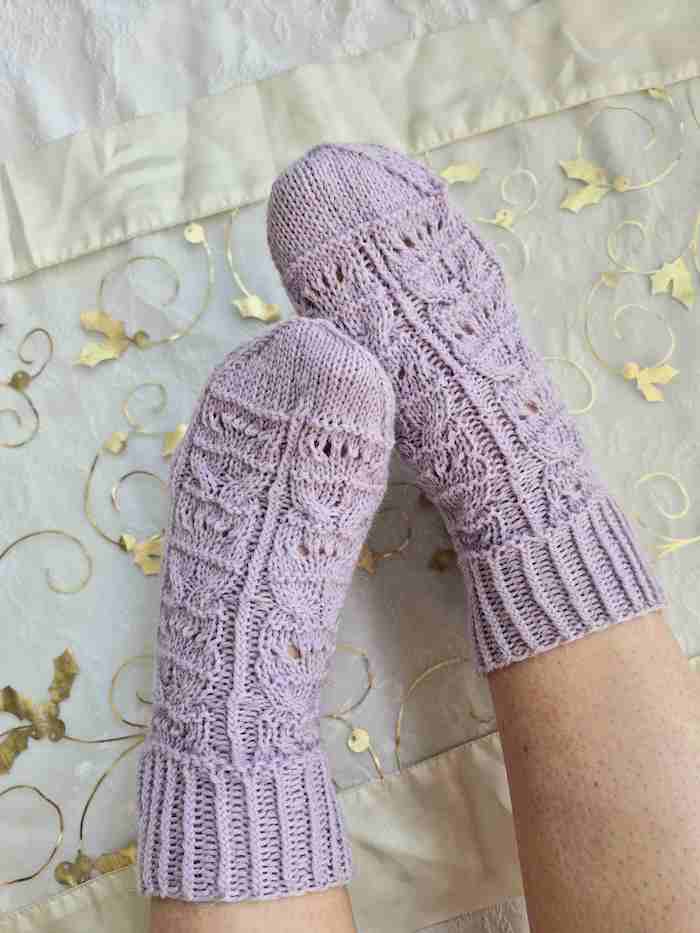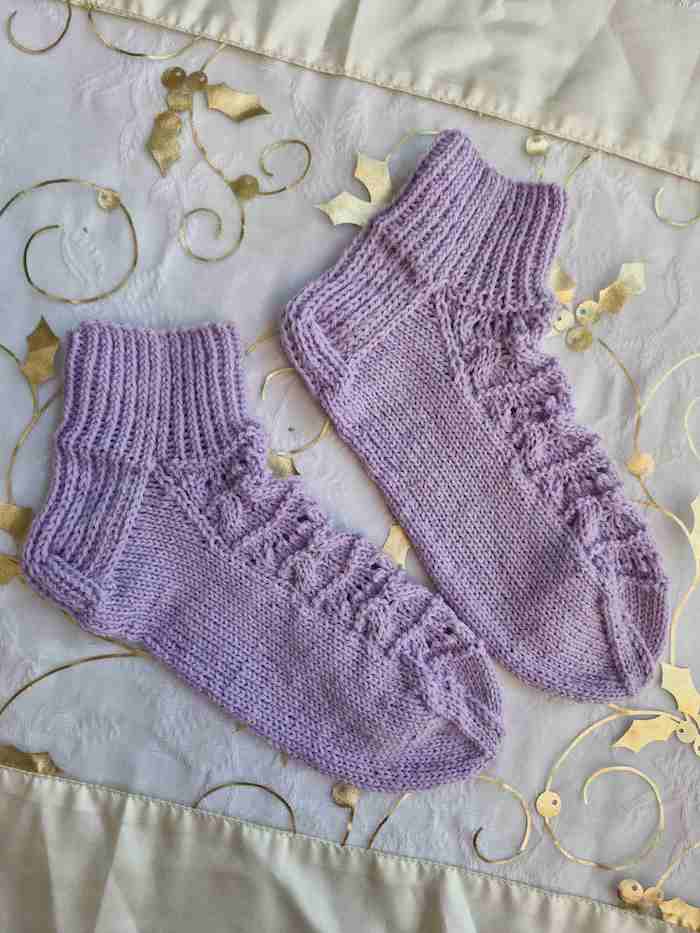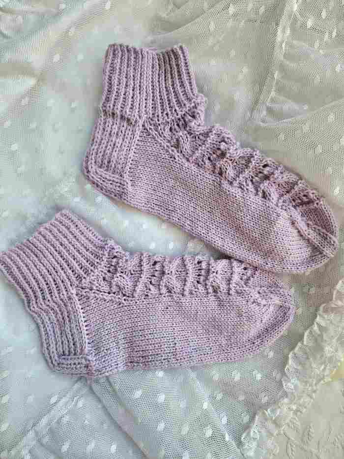 Vivi lyhytvartiset villasukat ovat pitsi- ja palmikkokuvioiset villasukat, jotka neulotaan ohuesta sukkalangasta.